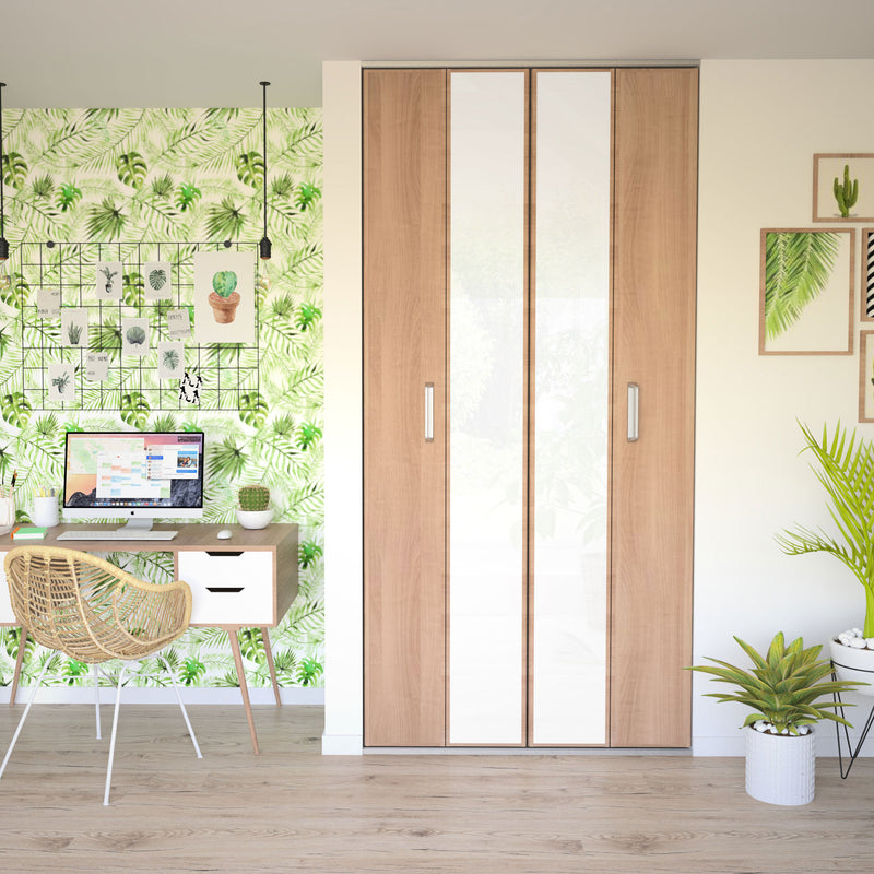 Pour un placard de taille standard, une façade à 2 portes est idéale ! Pliante ou pivotante pour un accès total au rangement, ou coulissante pour un gain de place optimal, faites votre choix avec Kazed.