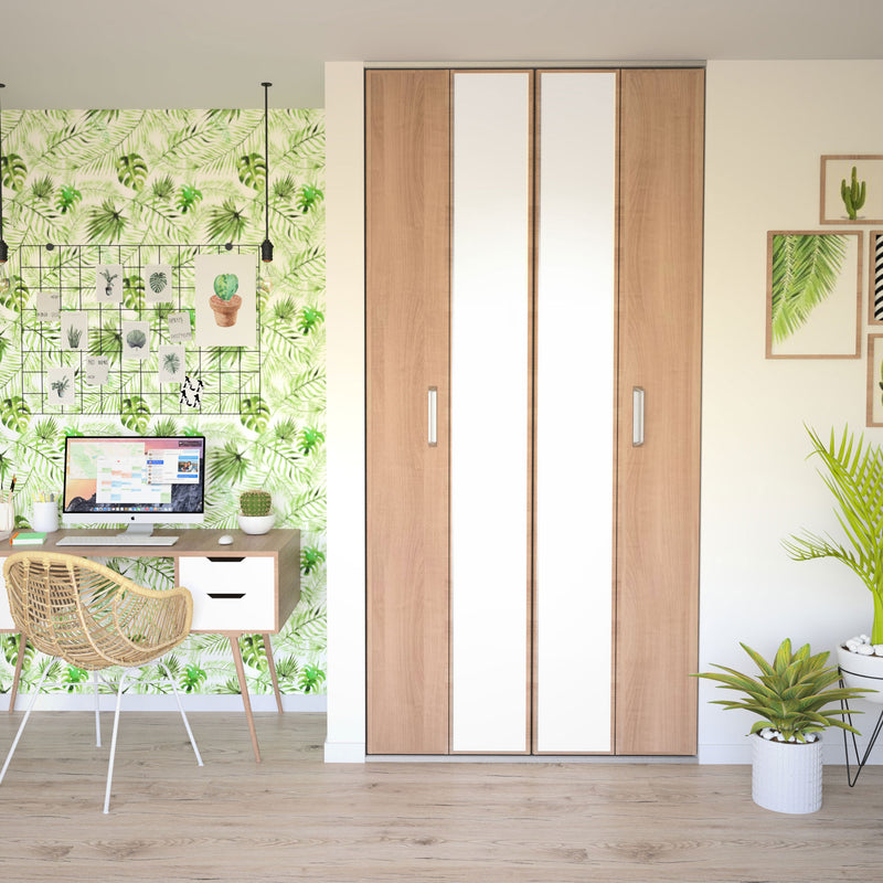 Façade de placard coulissante 2 portes décor chêne blond, miroir argent