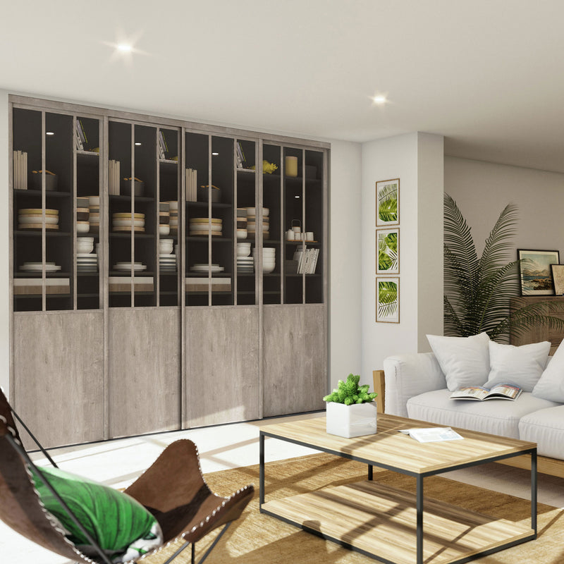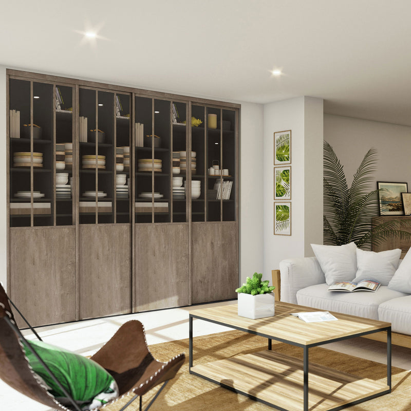 Façade de placard coulissante 4 portes décor chêne flanelle brut