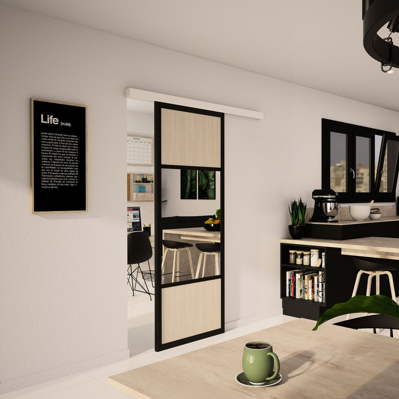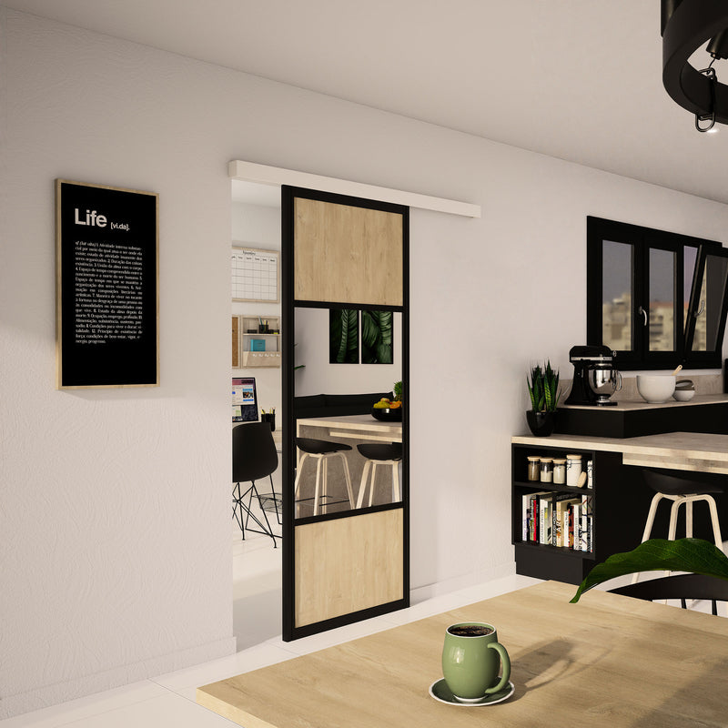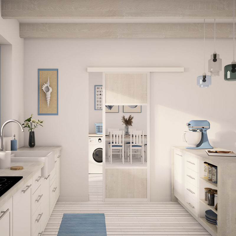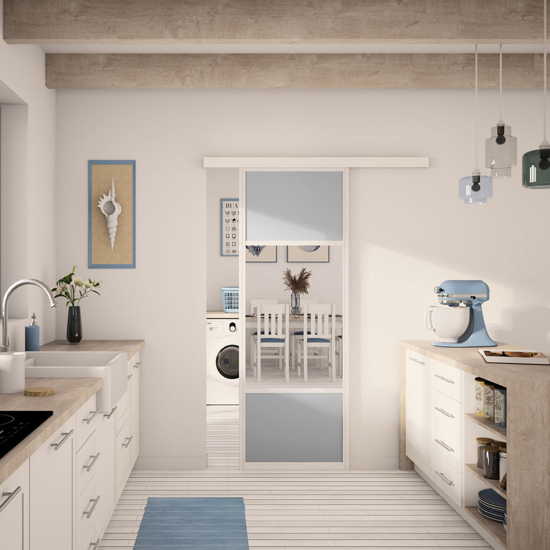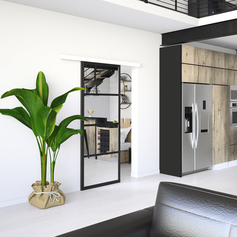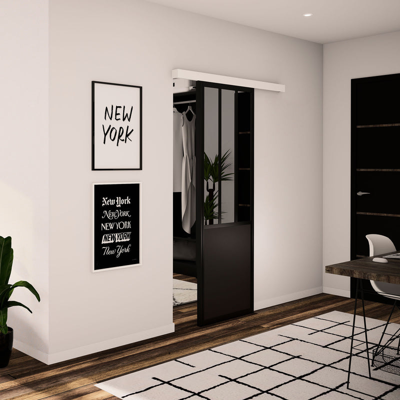Pour un intérieur design et fonctionnel, optez pour ces portes de séparation coulissantes de 930 mm de large. Grâce à leur système de pose en applique, elles coulissent le long de votre mur sans encombrement au sol. Votre baie est entièrement libre et le passage et total.