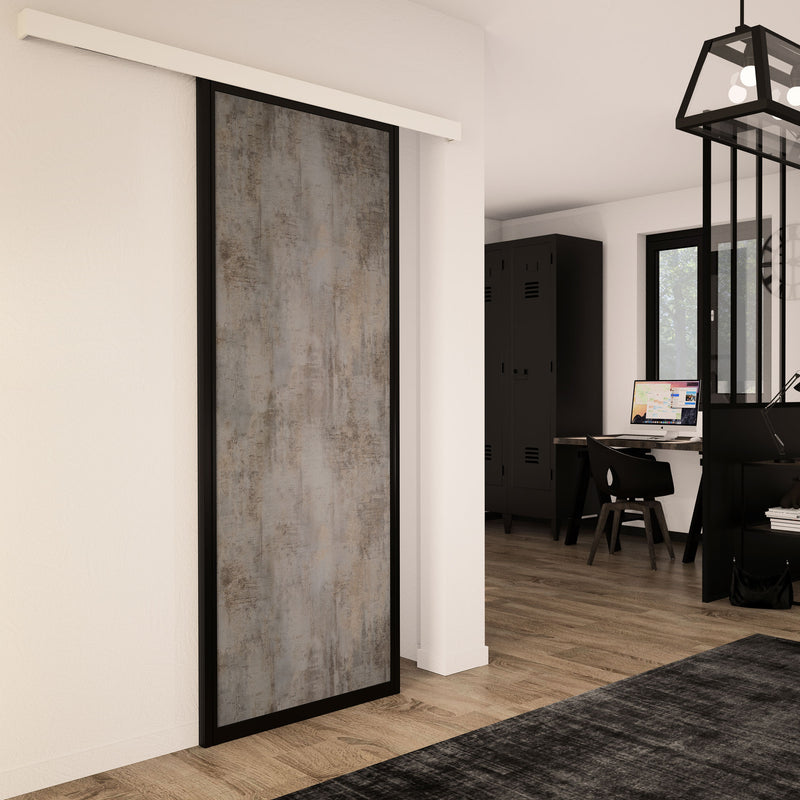 Porte de séparation coulissante et rail applique H2040 x L930 mm - Décor Béton Cuivré