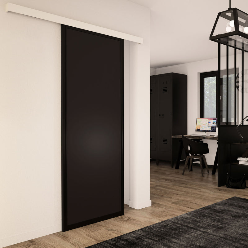 Porte de séparation coulissante et rail applique H2040 x L930 mm - Décor Noir Intense