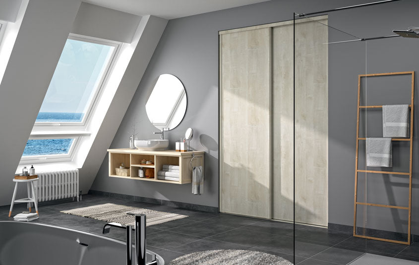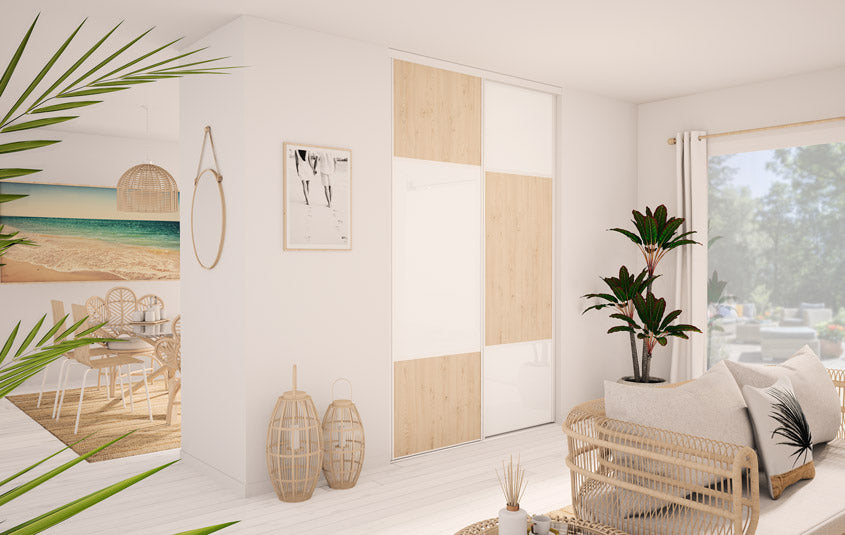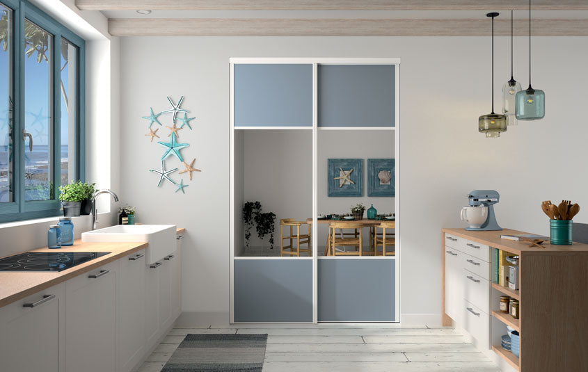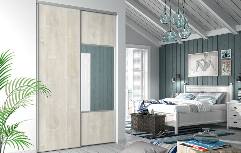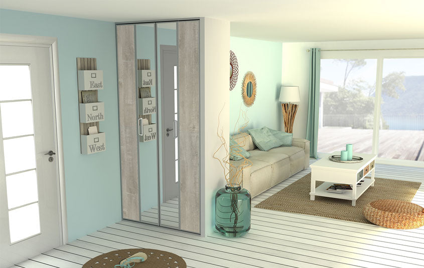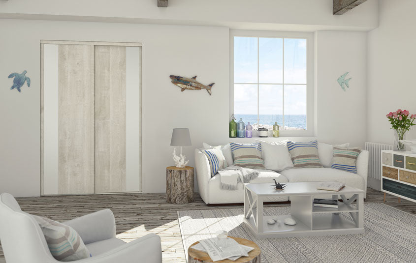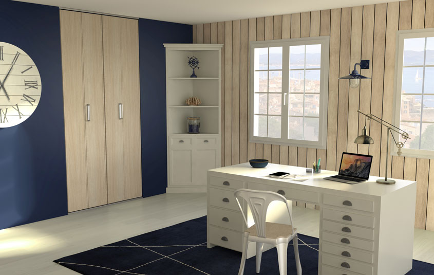 Doux et apaisant, le style Bord de mer s’inspire des différents composants du littoral : bois flotté, cordes de marin, coquillages, étoiles de mer… Jouant sur les couleurs afin de nous rappeler une promenade sur la plage un soir d’été, nos têtes de lit, portes de placard et portes de séparation coulissantes en applique se dévoilent sous différentes nuances de bleu, de blanc, de beige ou de gris clair. Ce style marin se complète à merveille avec du mobilier en rotin ou en bois brut.