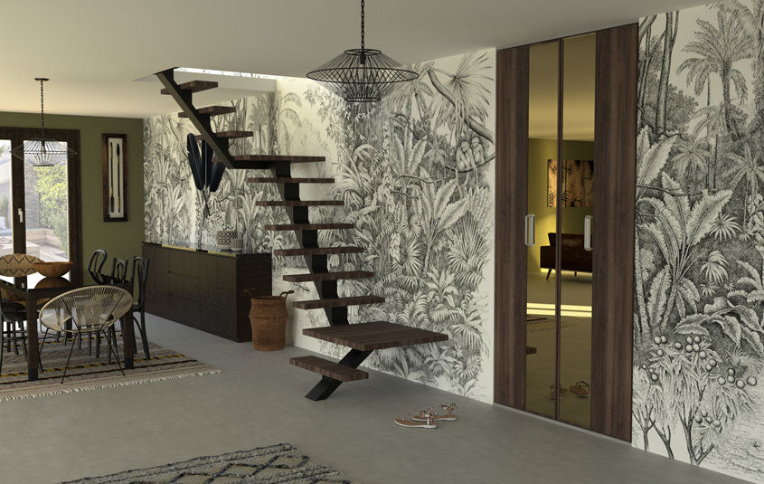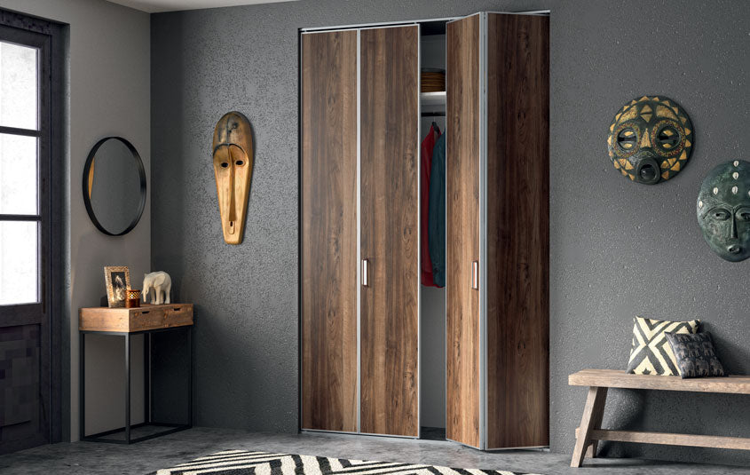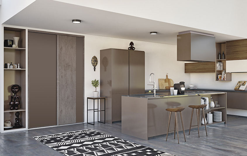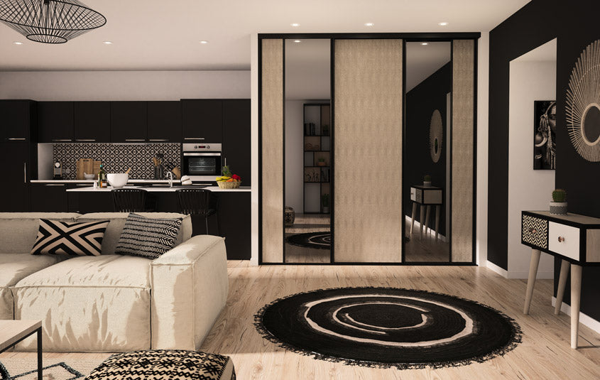 L’ambiance ethnique ravira les grands voyageurs dans l’âme. Avec ses tons chauds et ses couleurs sombres, ce style apporte à nos intérieurs une ambiance chaleureuse et dépaysante. Pimentez vos portes de placard avec des bois sombres et des effets cuirs ou optez pour la modernité des tons neutres et unis. Dans la chambre, adoptez la tête de lit assortie ! Pour parfaire votre déco, misez sur un sol en fibres tressées. Direction la savane à la rencontre des grands fauves avec l’ambiance ethnique !