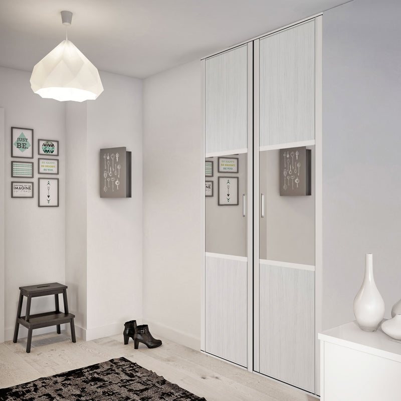 Façade de placard pivotante 2 portes décor blanc mat, miroir argent