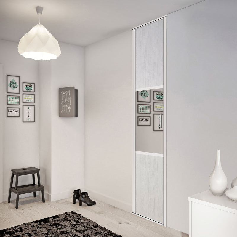 Façade de placard coulissante 1 porte décor blanc mat, miroir argent