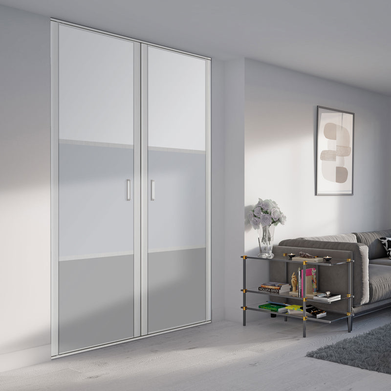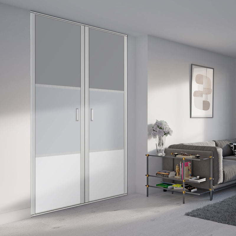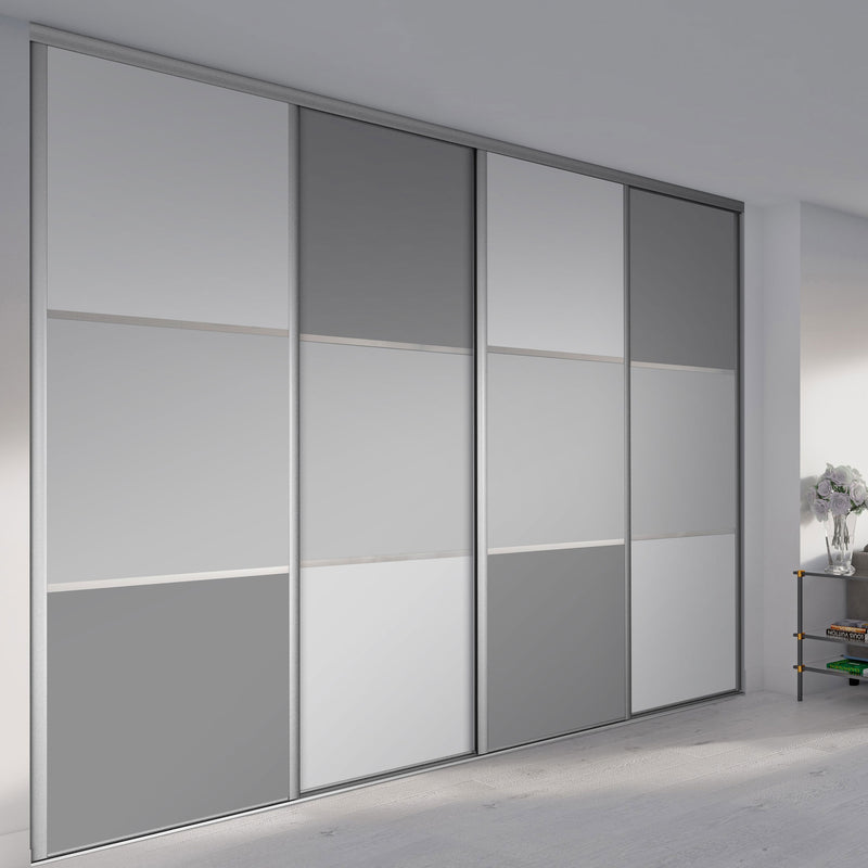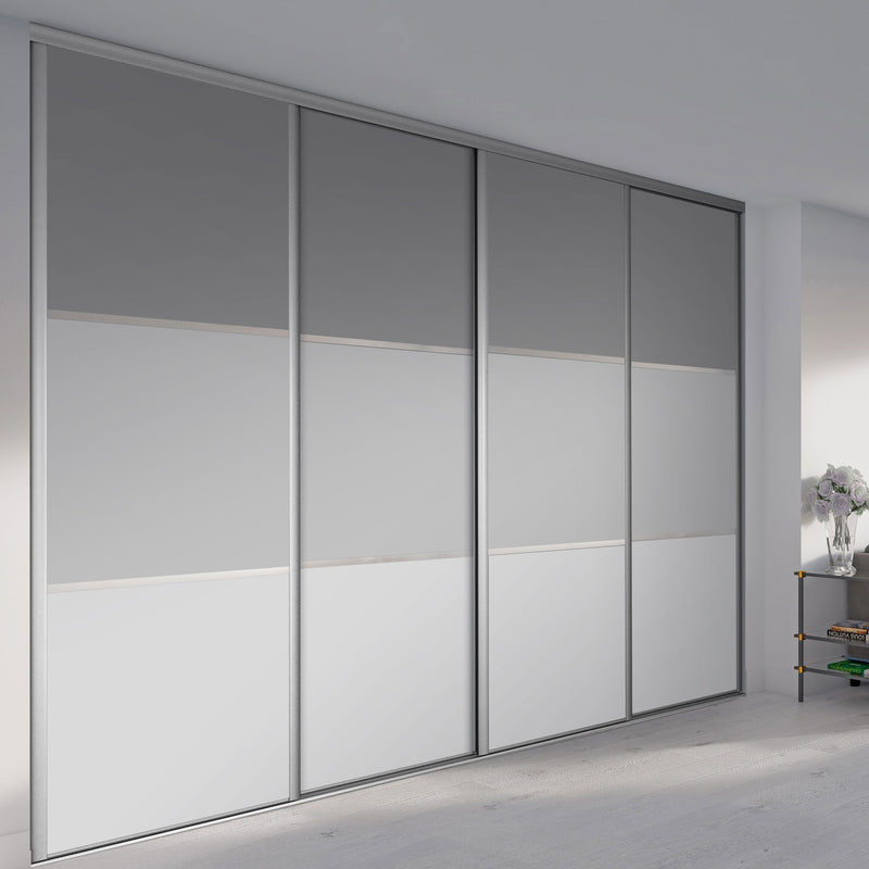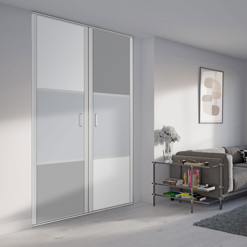 Façade de placard coulissante 2 portes verre laqué blanc pur, verre laqué gris perle, verre laqué gris foncé