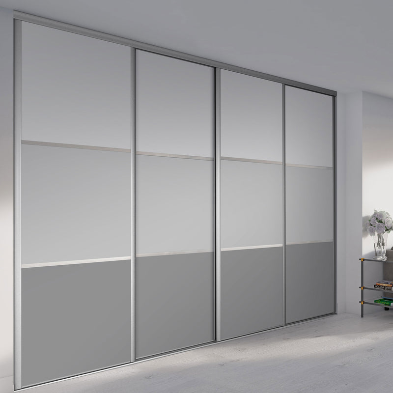 Façade de placard coulissante 2 portes verre laqué gris foncé, verre laqué gris perle, verre laqué blanc pur