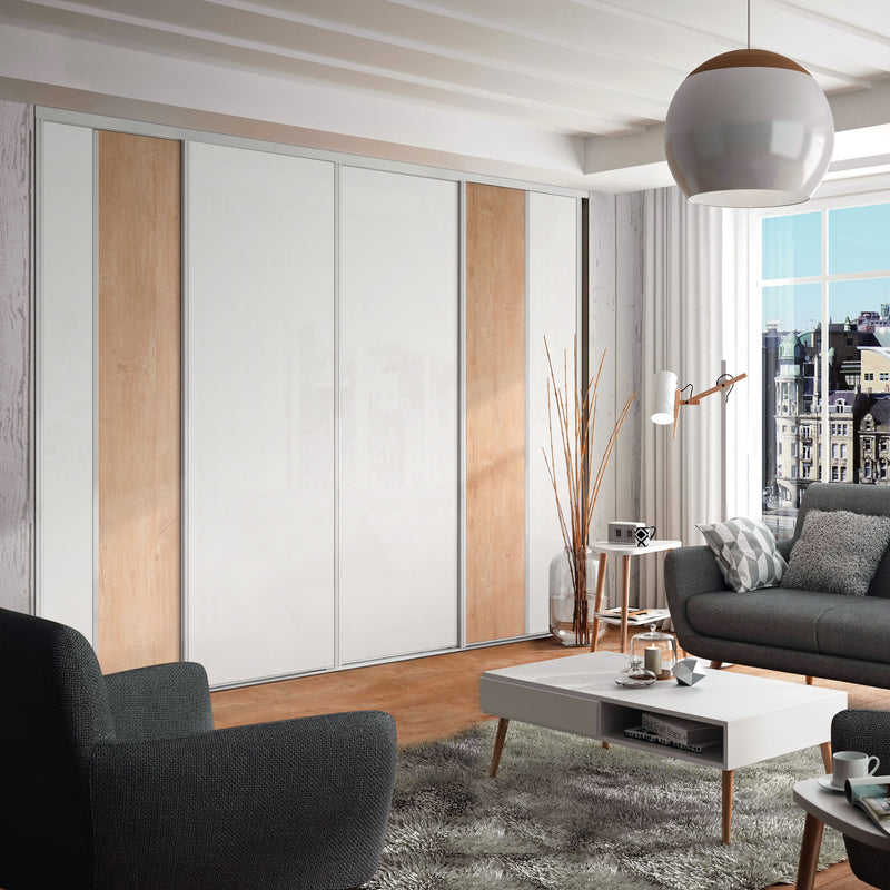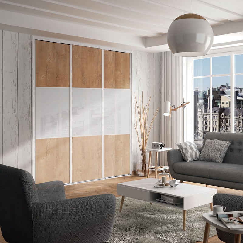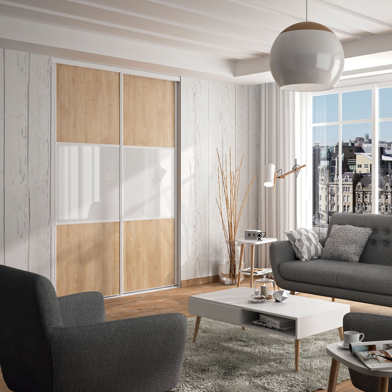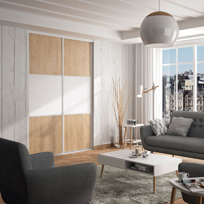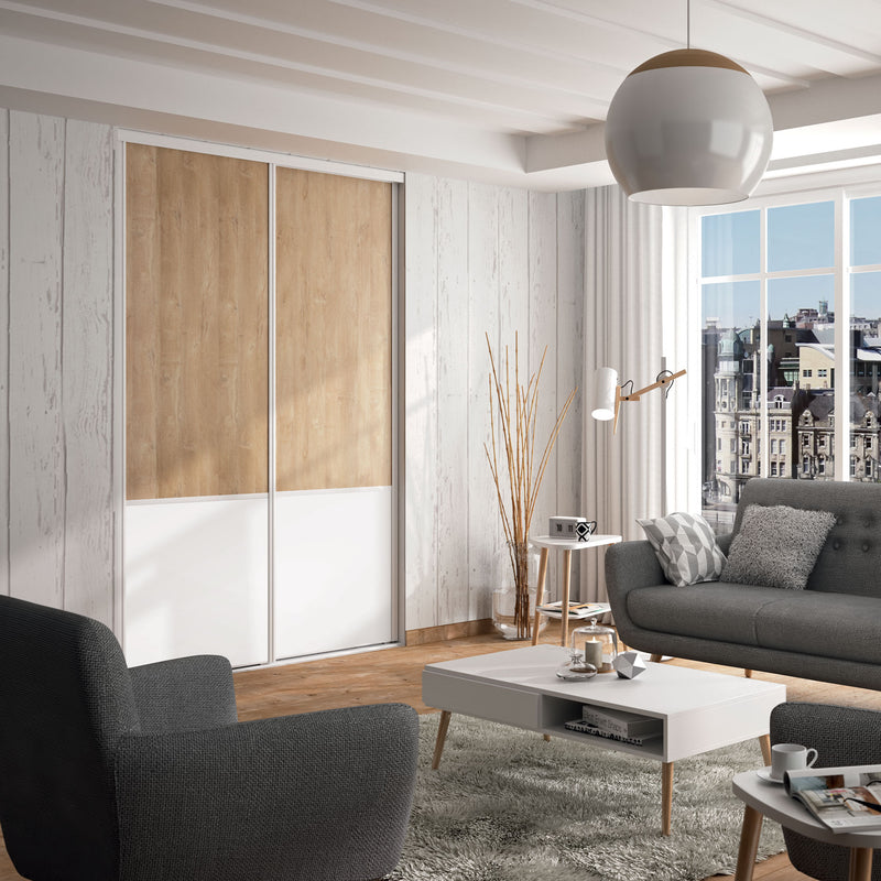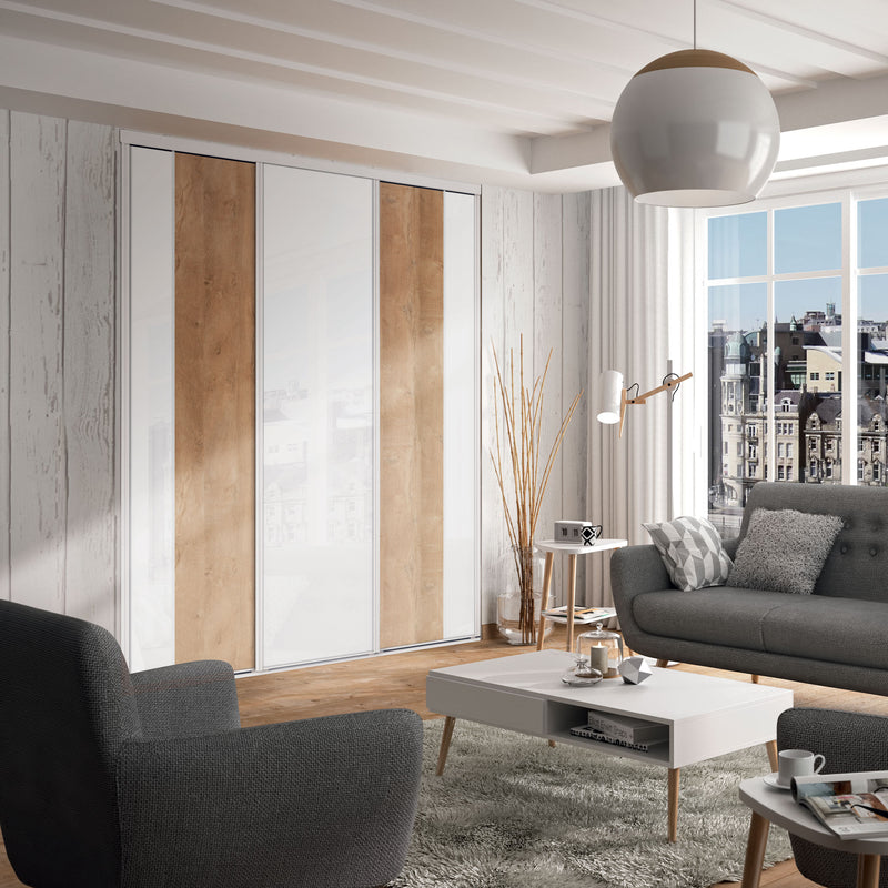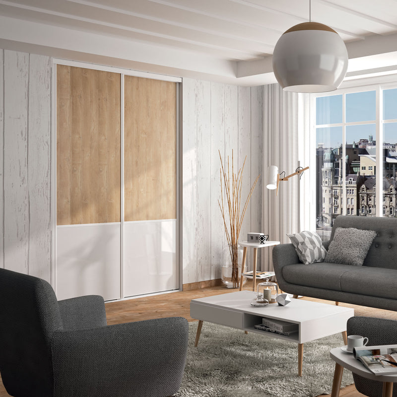 Créez une ambiance cocoon dans votre salon grâce à cette collection de portes de placard mettant le style scandinave à l’honneur. Dans la chambre, les têtes de lit seront du plus bel effet ! Ce mélange de verre laqué blanc pur design et de bois clair chaleureux forme un mariage harmonieux.