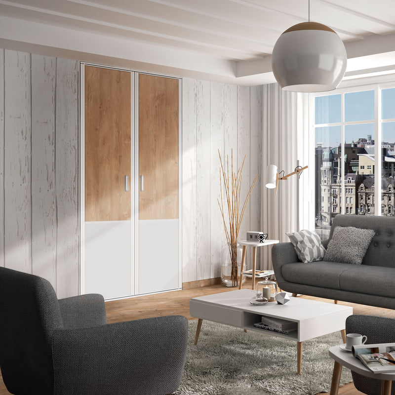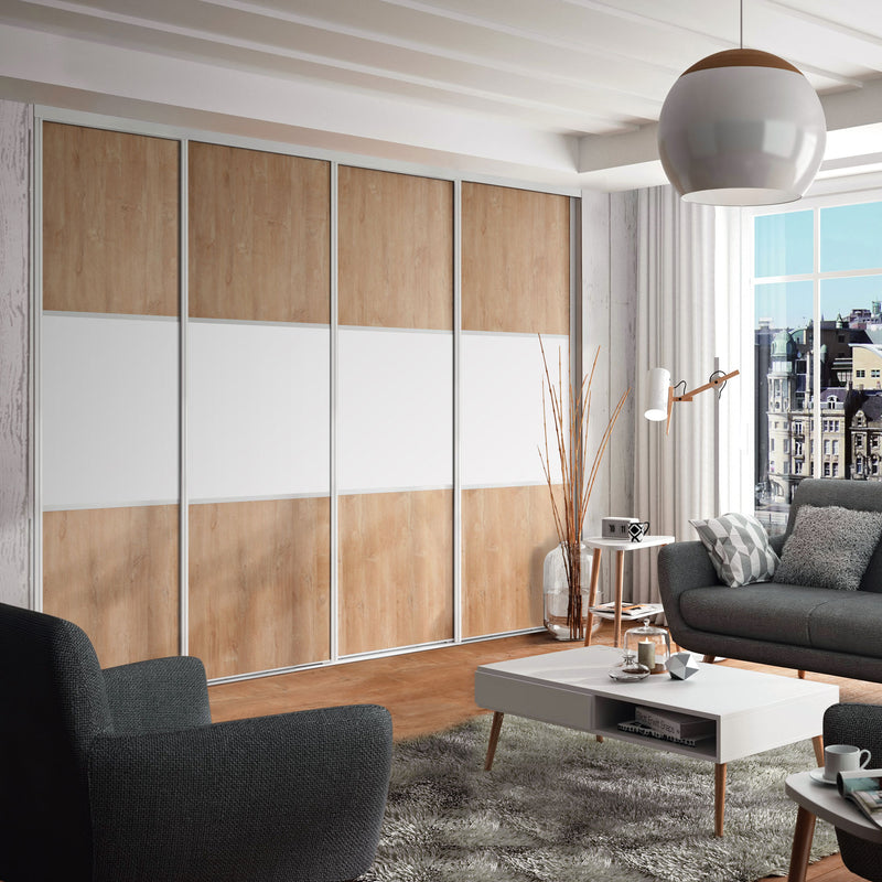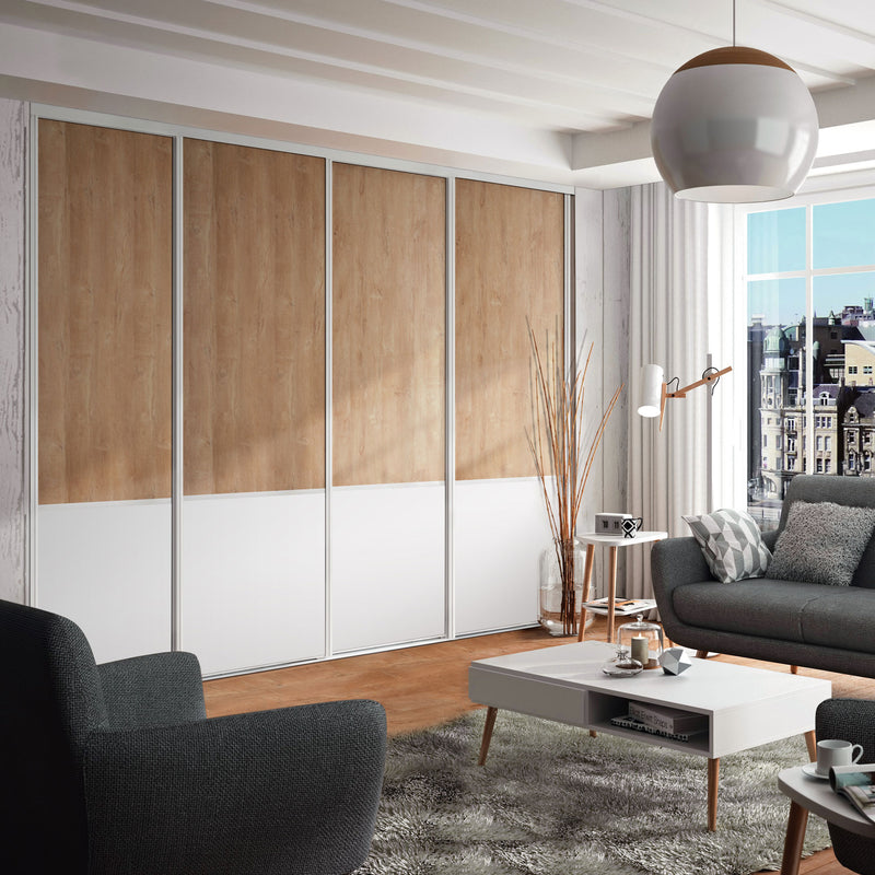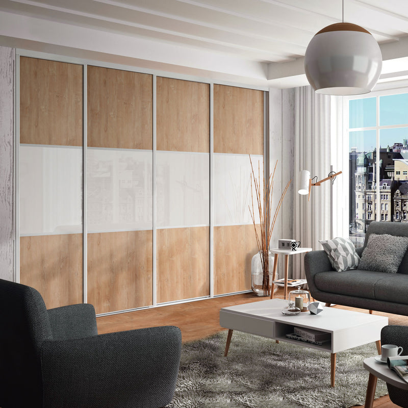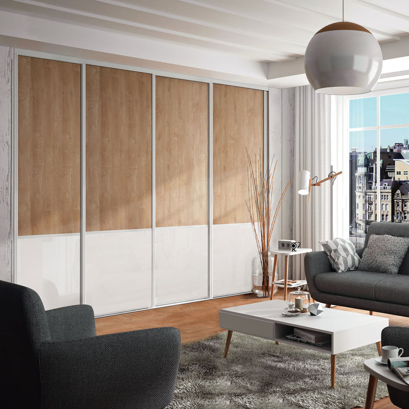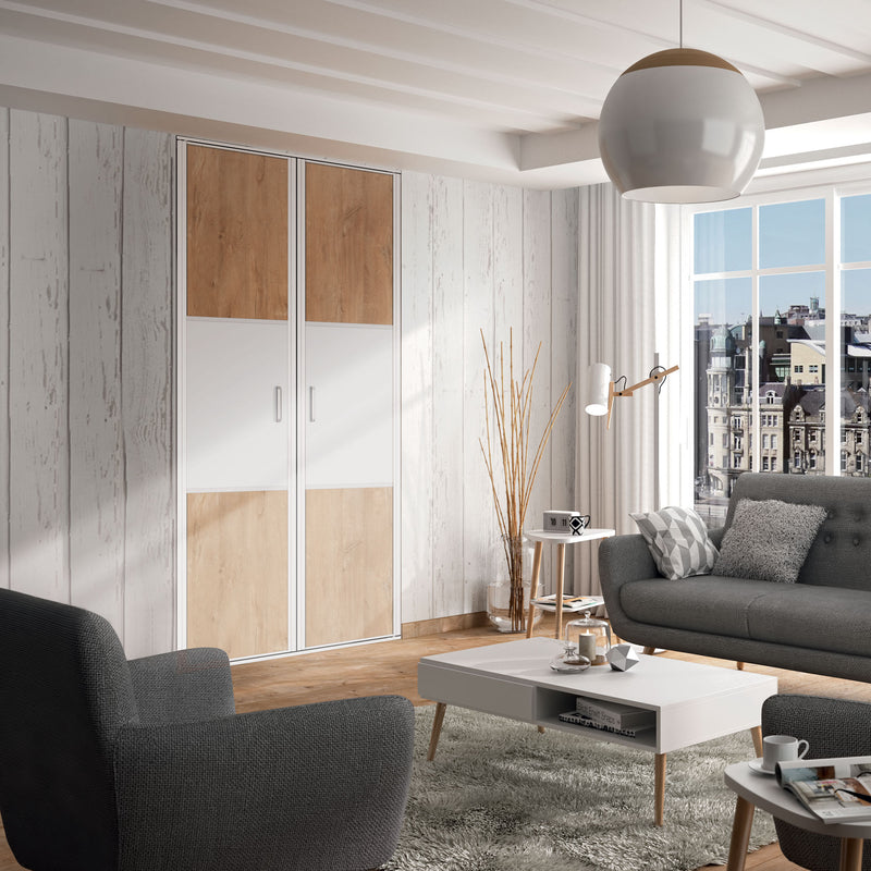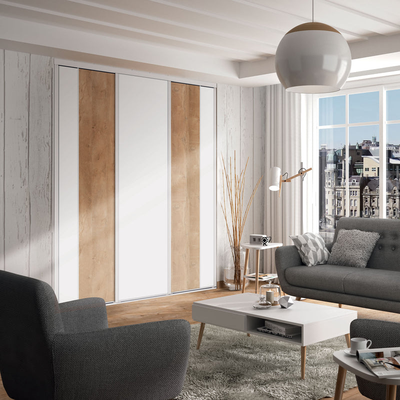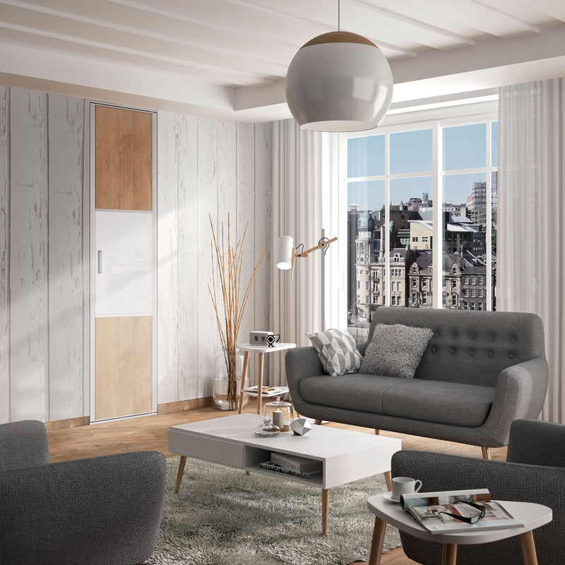 Créez une ambiance cocoon dans votre salon grâce à cette collection de portes de placard mettant le style scandinave à l’honneur. Dans la chambre, les têtes de lit seront du plus bel effet ! Ce mélange de verre laqué blanc pur design et de bois clair chaleureux forme un mariage harmonieux.