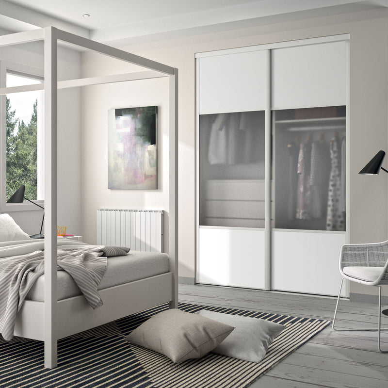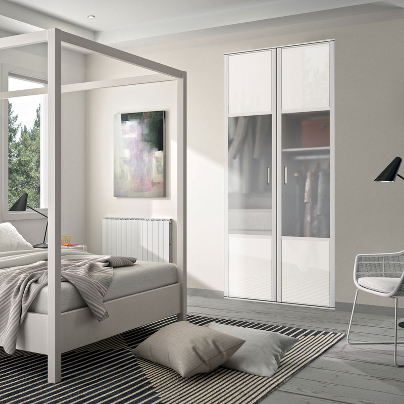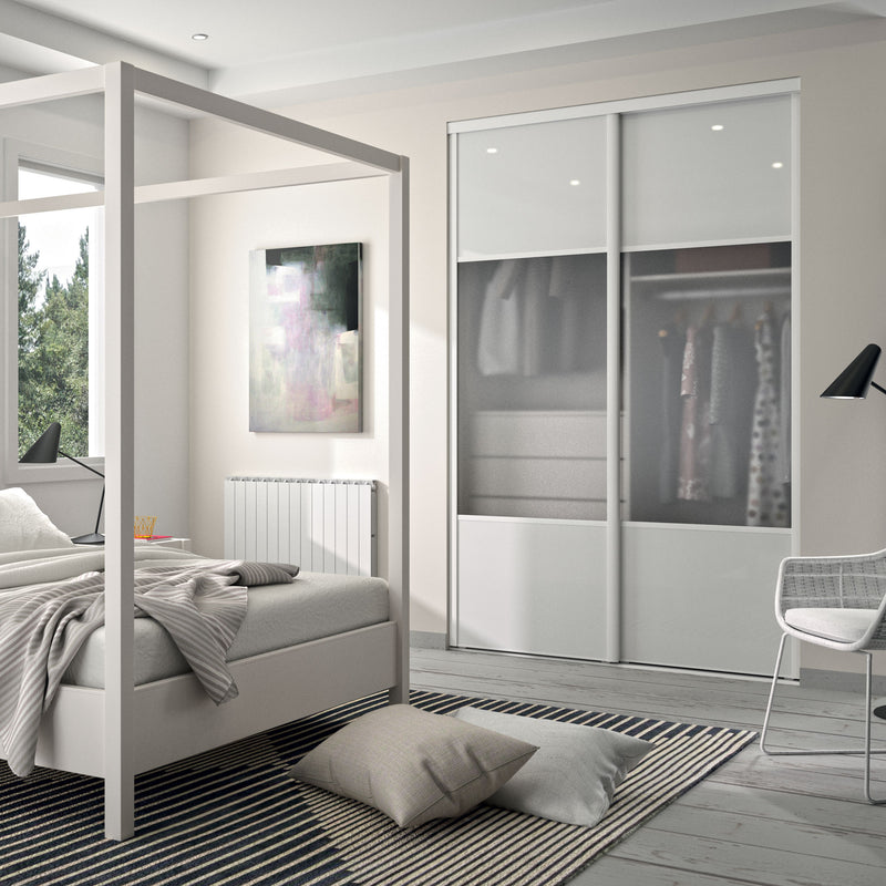 Façade de placard coulissante 2 portes décor blanc mat, vitre dépolie