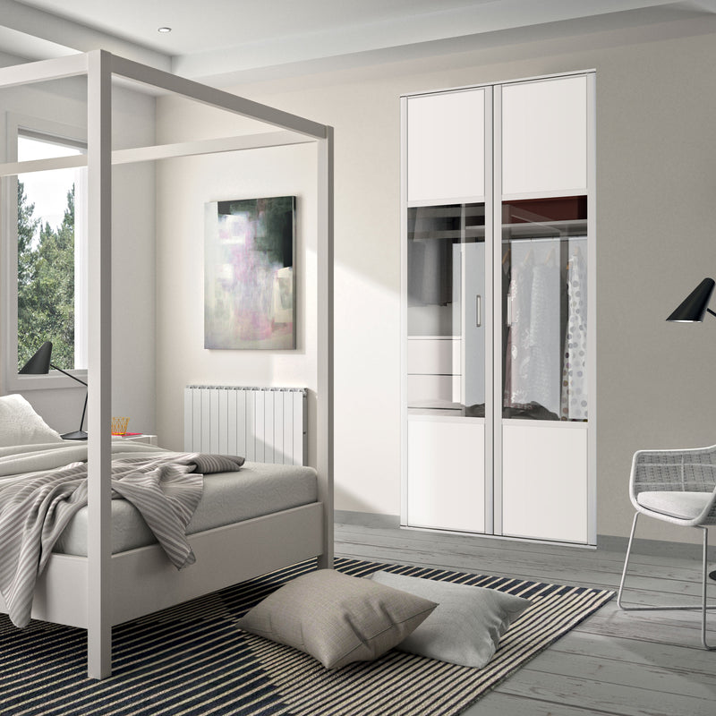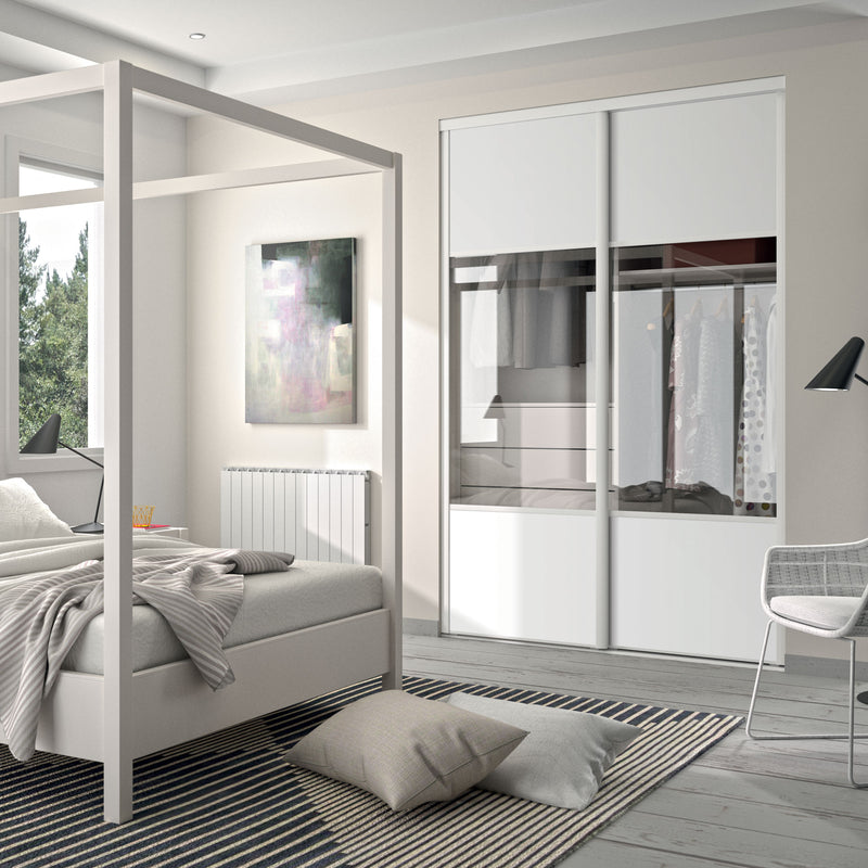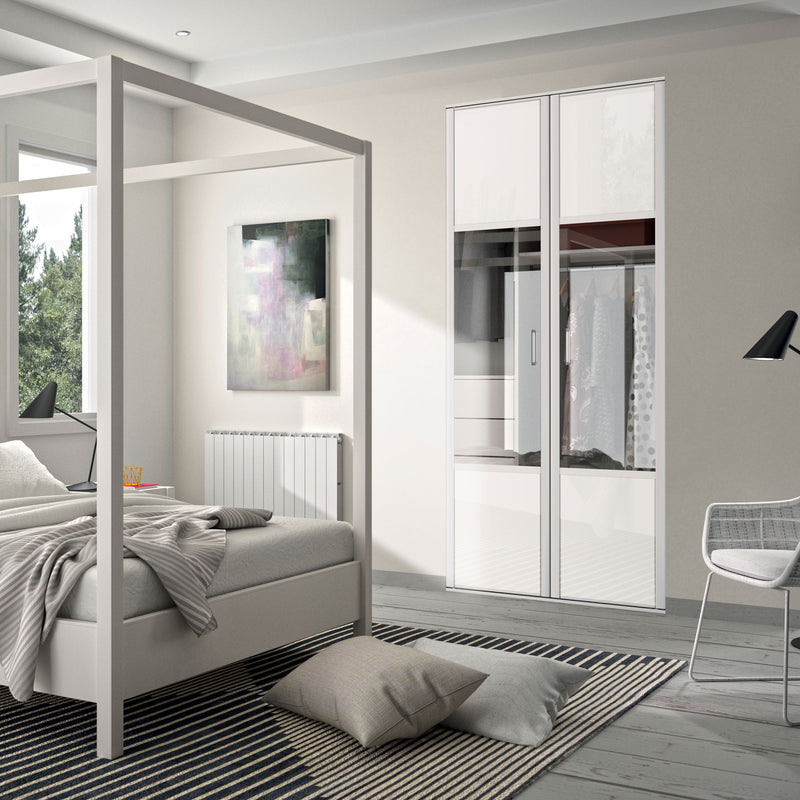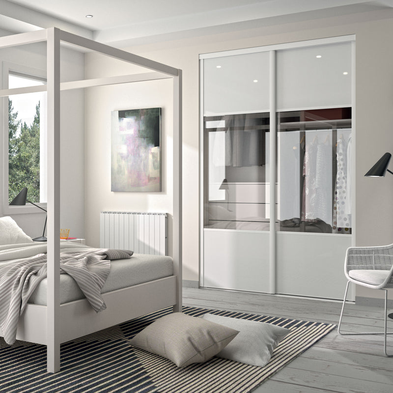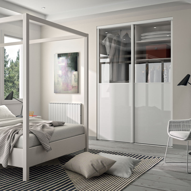 Façade de placard coulissante 2 portes décor blanc mat, vitre claire