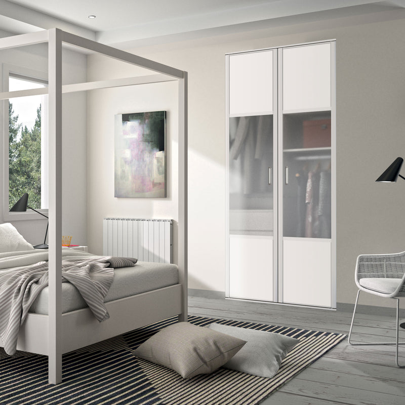 Façade de placard pivotante 2 portes décor blanc mat, vitre dépolie