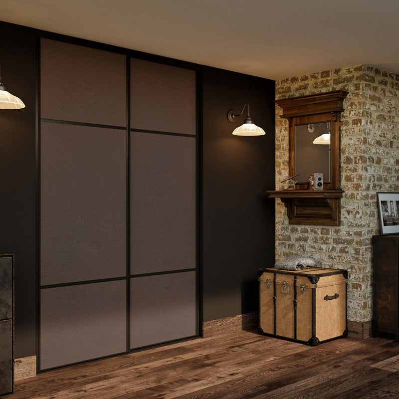 Osez le total look cuir sur ces portes de placard Kazed aux finitions noir mat pour une déco ultra chic. Choisissez parmi nos deux nuances d'effets cuir vintages et craquez pour cette Collection qui donnera le ton à votre suite parentale.