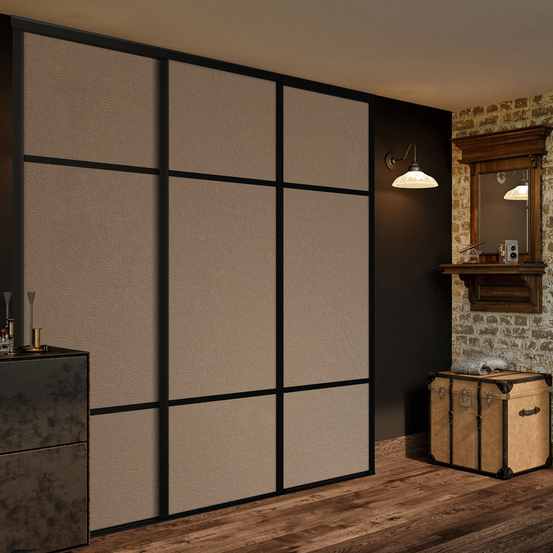 Façade de placard coulissante 3 portes effet cuir vintage beige