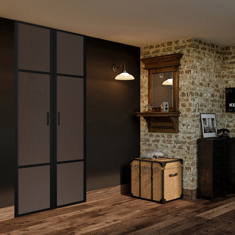 Façade de placard coulissante 2 portes effet cuir vintage brun