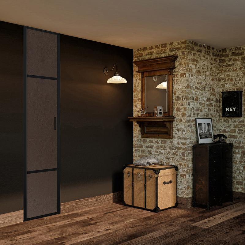 Façade de placard coulissante 3 portes effet cuir vintage brun