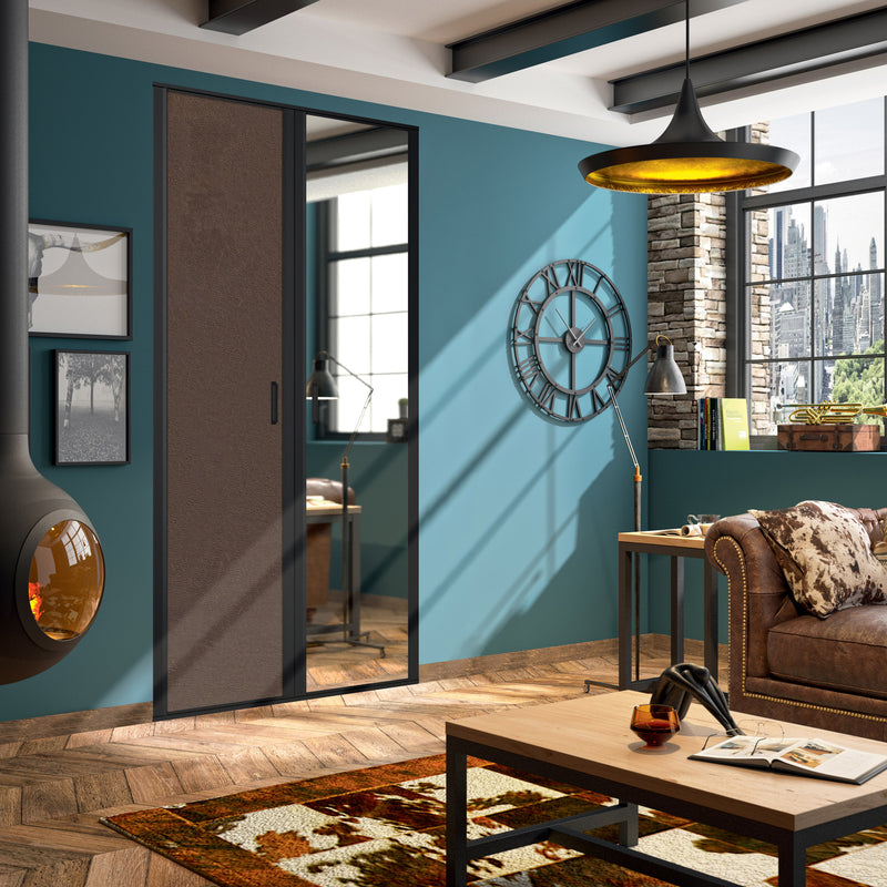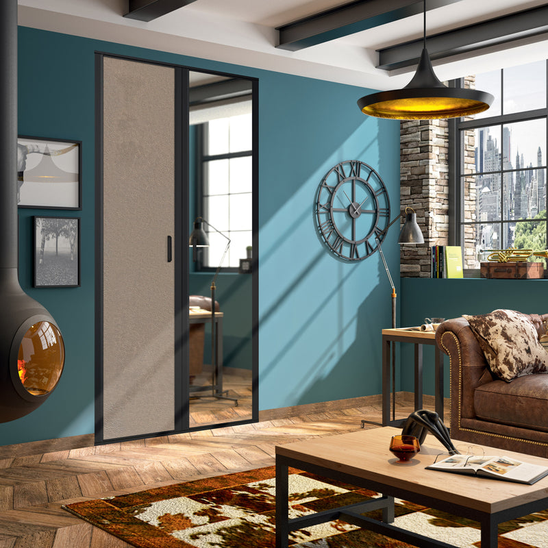 Optez pour cette composition alliant l’élégance d'un décor effet cuir à la brillance du miroir, le tout mis en valeur par une finition noir mat très moderne. Cette collection très chic de portes de placard trouvera facilement sa place dans votre déco vintage.