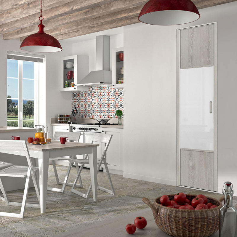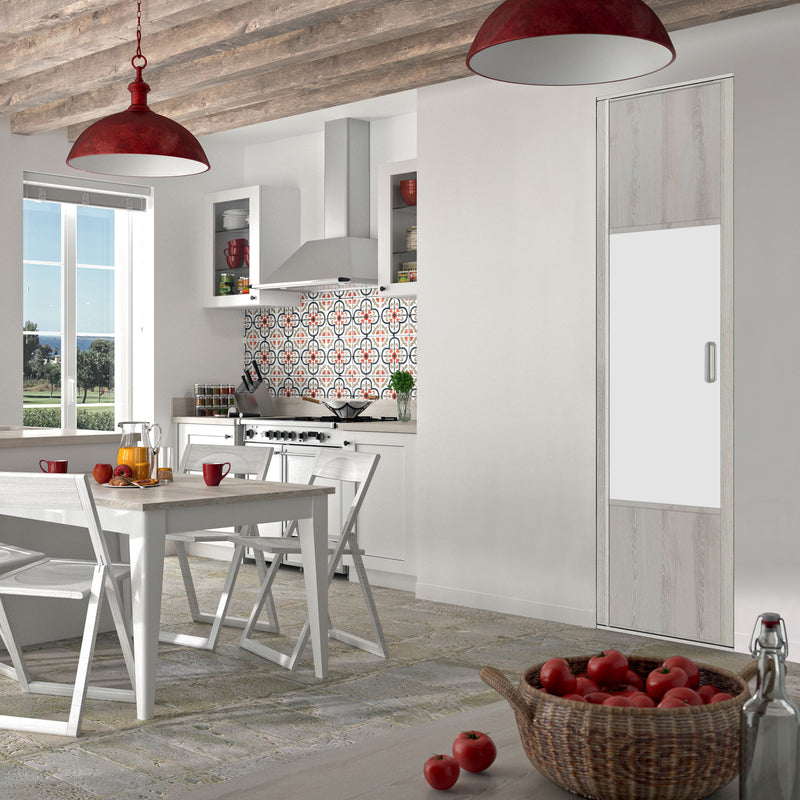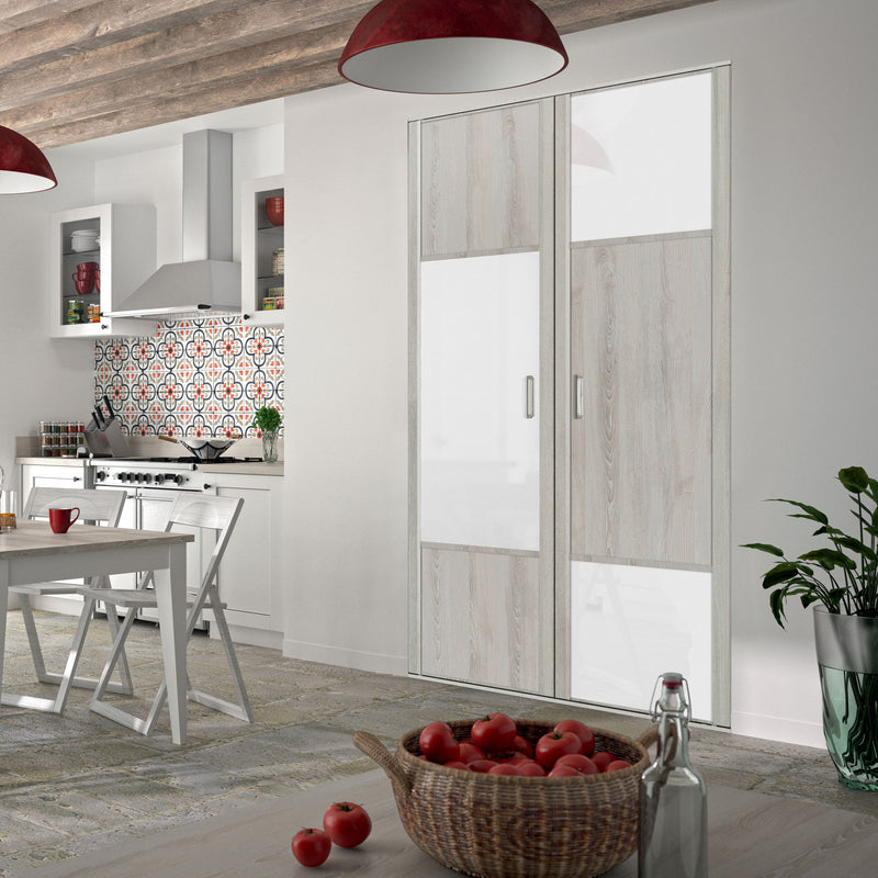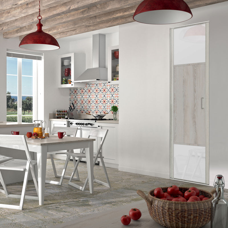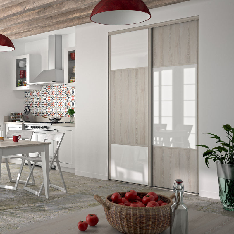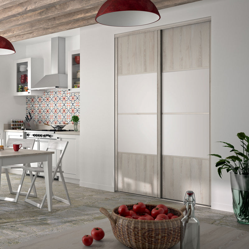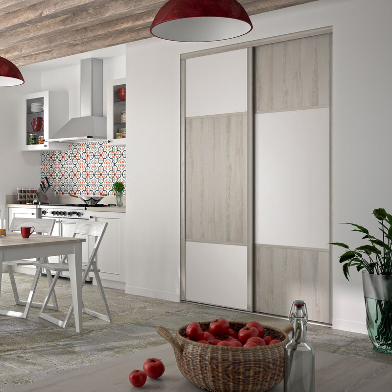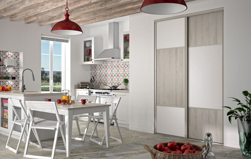 Adoptez cette collection de portes de placard, et apportez un esprit déco champêtre à votre cuisine. Authentique avec son bois brut, elle reste moderne grâce à une association réussie au coloris blanc mat. Choisissez la composition en damier pour l’originalité ou la version en ligne pour la sobriété.