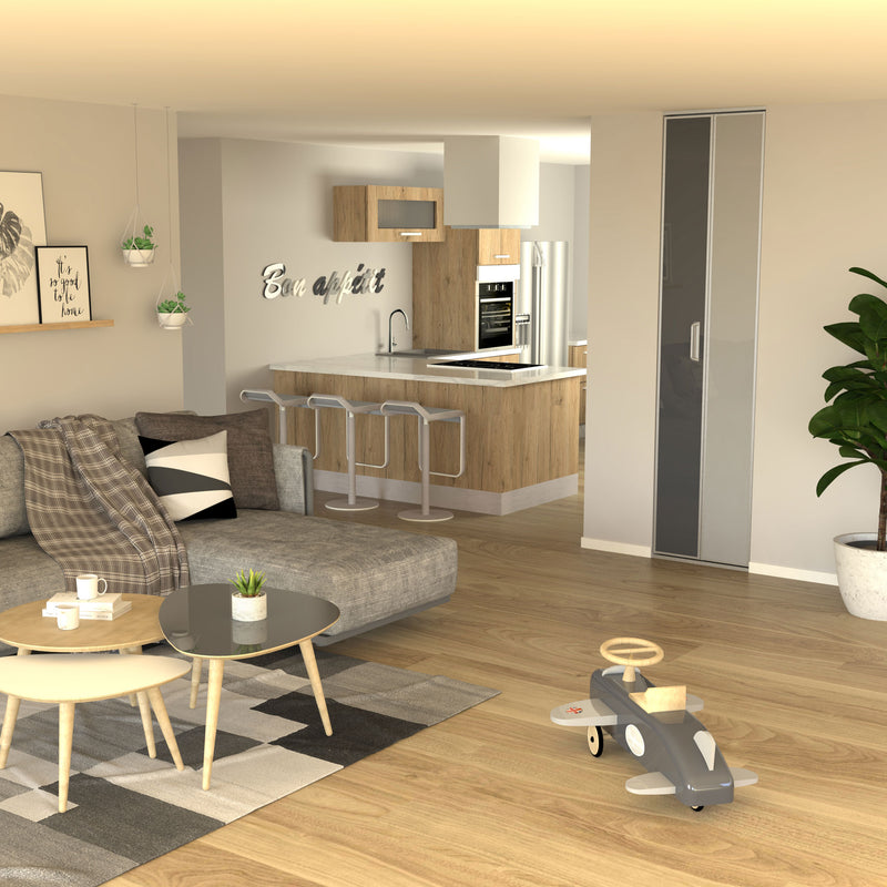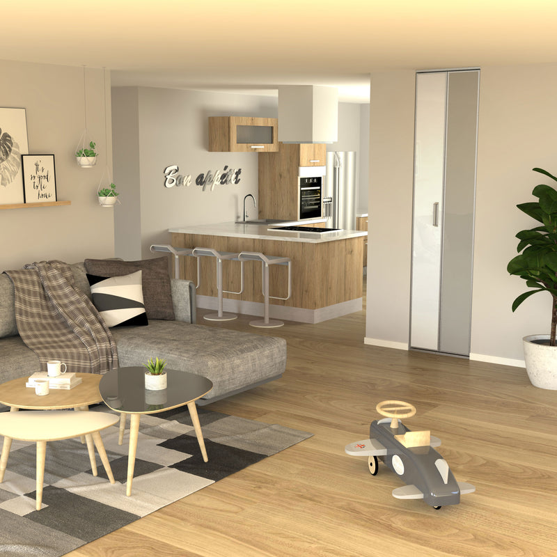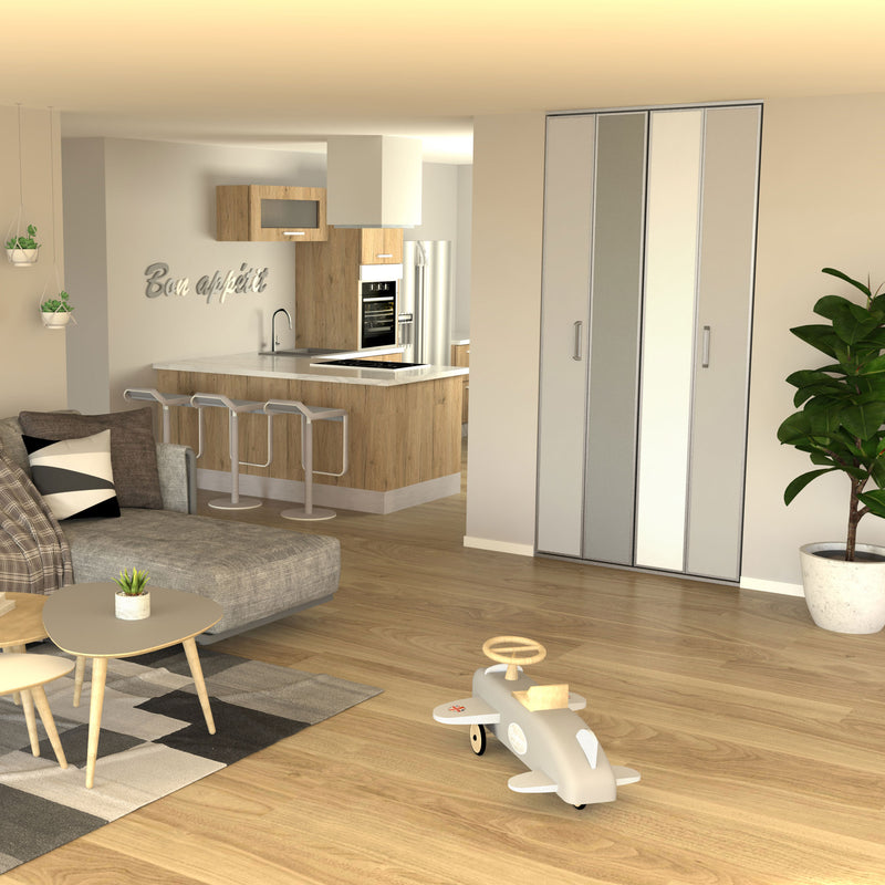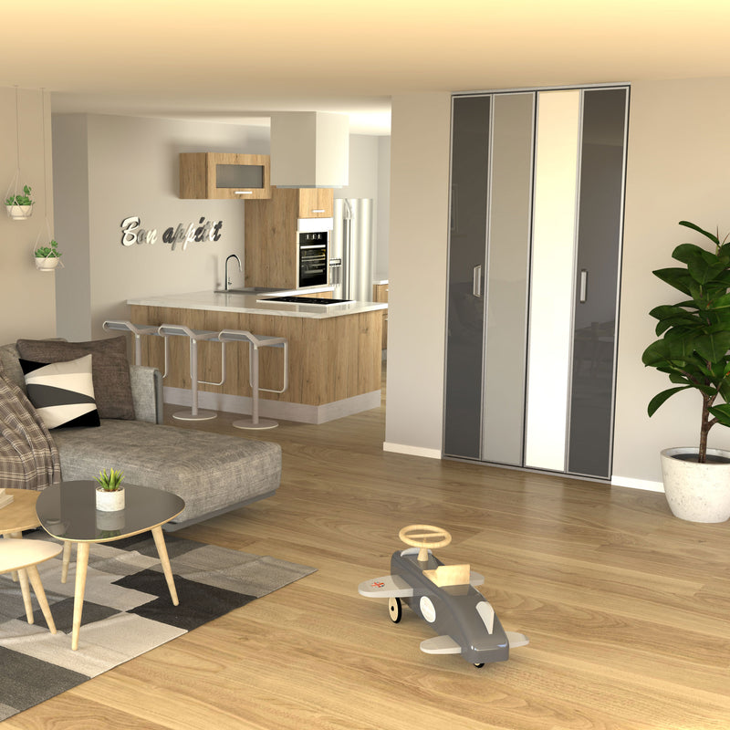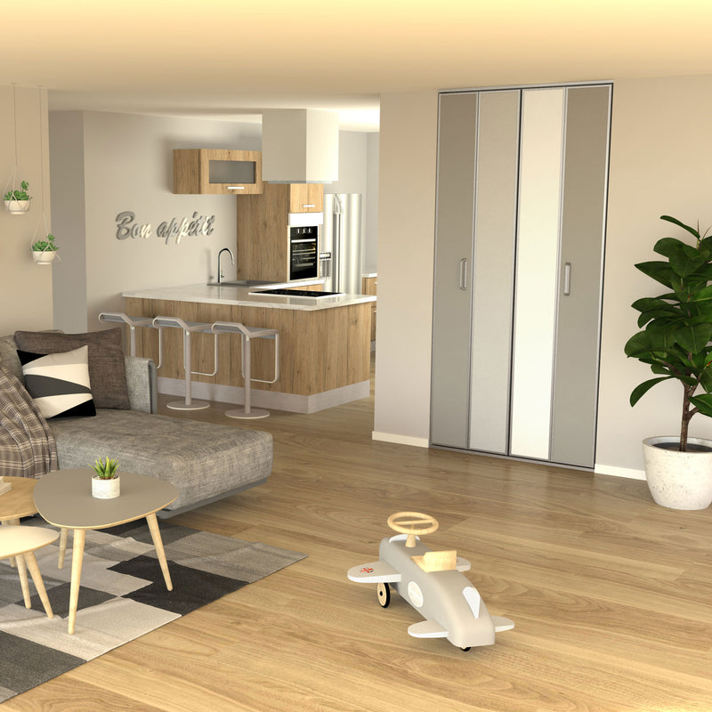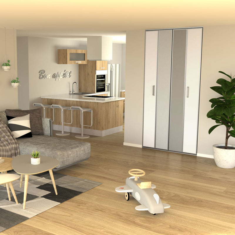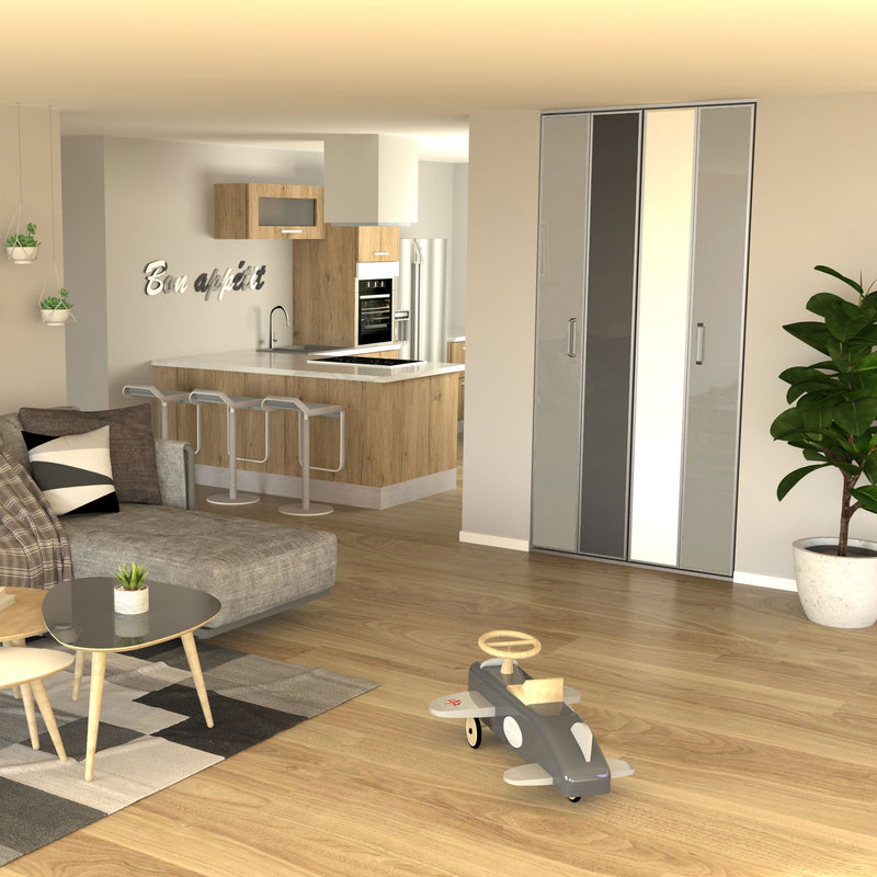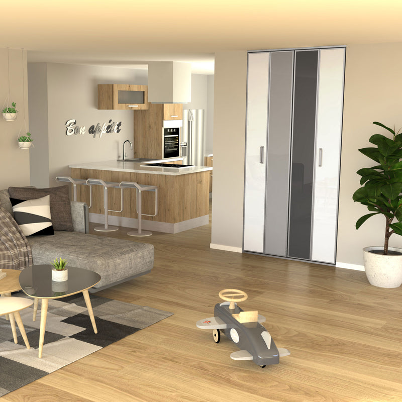 Dans le salon ou l’entrée, la Collection Corneille de portes de placard pliantes Kazed décline ses multiples nuances de gris pour un rendu rafraîchissant et élégant !