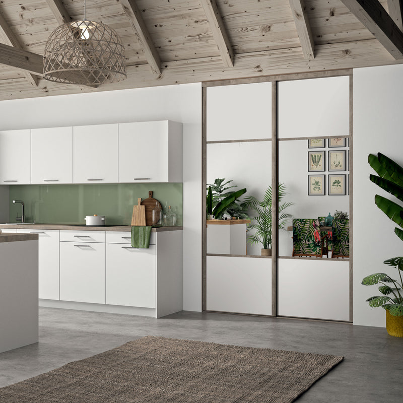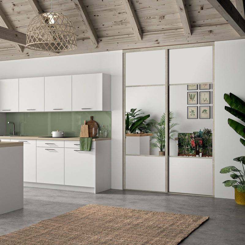 Pour une déco tropicale soft, optez pour la Collection Cosmopolitan qui associe un décor blanc intemporel à un miroir argent lumineux. La finition des poignées, rail et traverses effet bois apporte la touche d’exotisme et l’originalité à ces portes de placard. Le plus dur sera de choisir entre les 3 tons bois qui vous sont proposés.