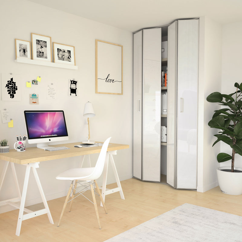 Façade de placard pliante 2 portes verre laqué blanc pur