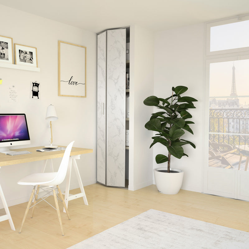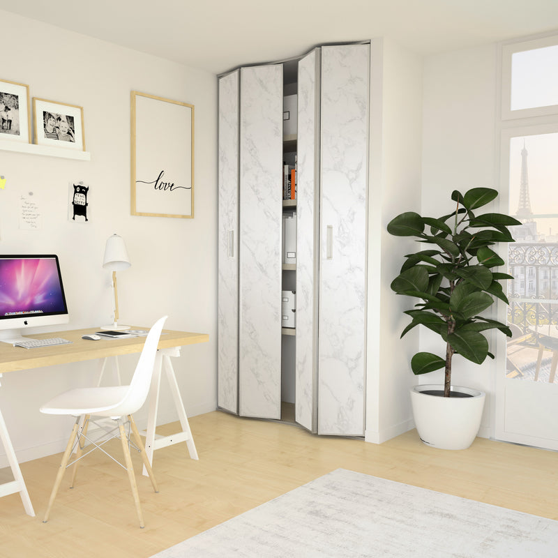 Design et élégante, Himalaya, cette Collection de portes de placard pliantes Kazed trouvera sa place dans tous les intérieurs, petits ou grands, éclectiques ou au style très marqué. Robustes et de qualité, ses rails, bandeaux et profils sont en aluminium offrant ainsi une finition remarquable. Votre choix devra se porter sur le nombre de portes : 1 ou 2 ? Ainsi que sur les décors : Blanc mat, Marbre blanc, Zebrano blanc ? à moins que vous ne préfériez la brillance du verre laqué Blanc pur ? Dans tous les cas, les façades pliantes Kazed se mettent à vos dimensions en hauteur et en largeur au mm près !