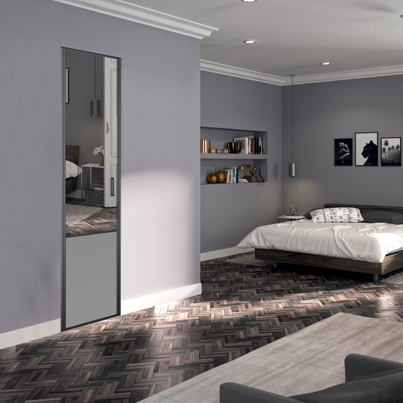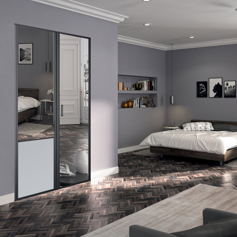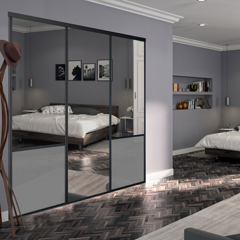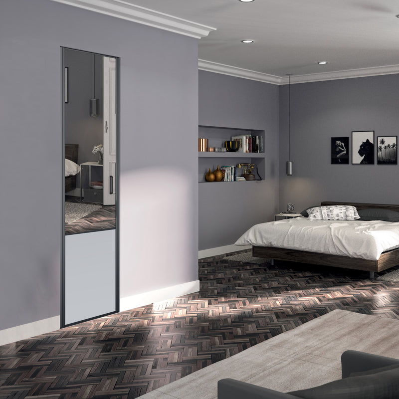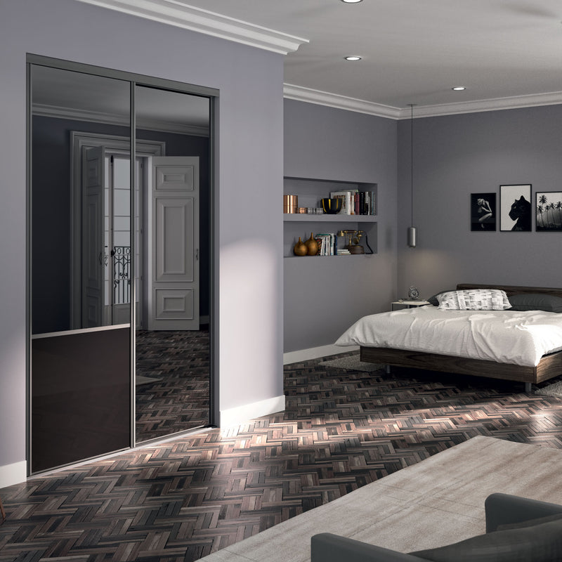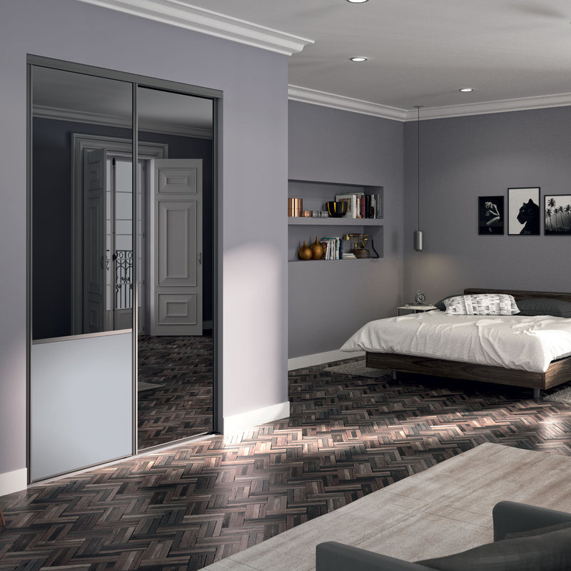 Omniprésent dans la décoration contemporaine, le gris est comme le nouveau noir : à la fois sobre et chic. Cette collection de portes pour vos aménagements de placard, associe un miroir plomb à un verre laqué, et apportera style et élégance à votre décoration.