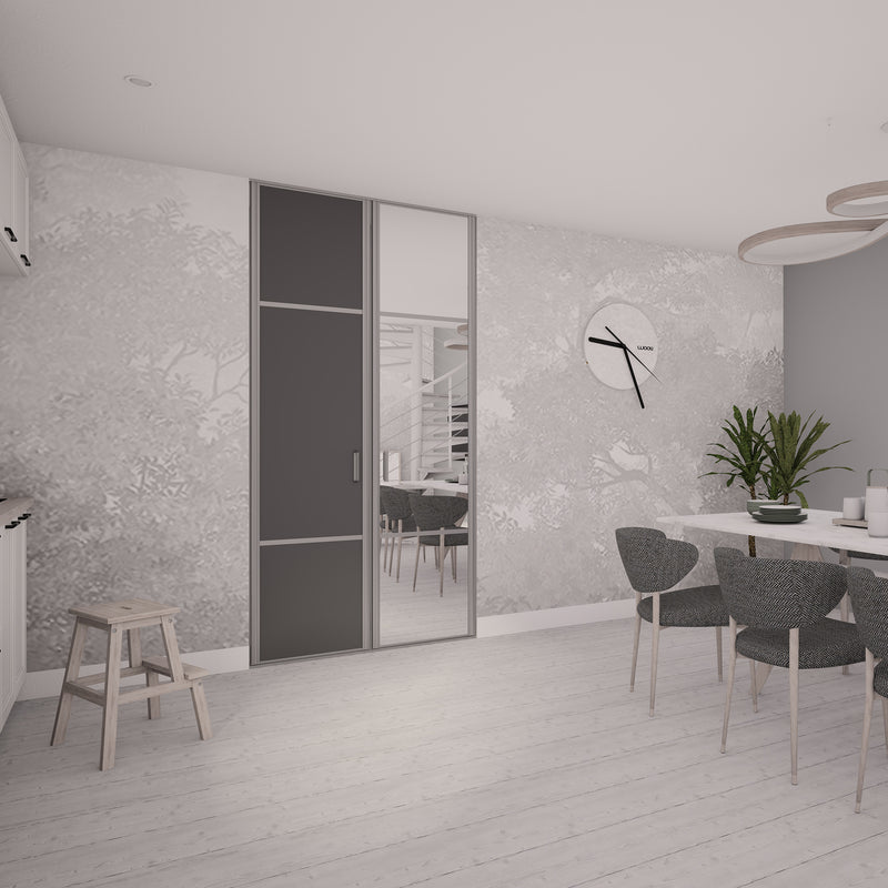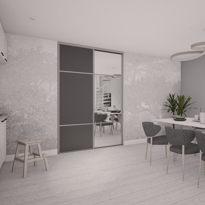 Façade de placard coulissante 2 portes décor gris anthracite, miroir argent