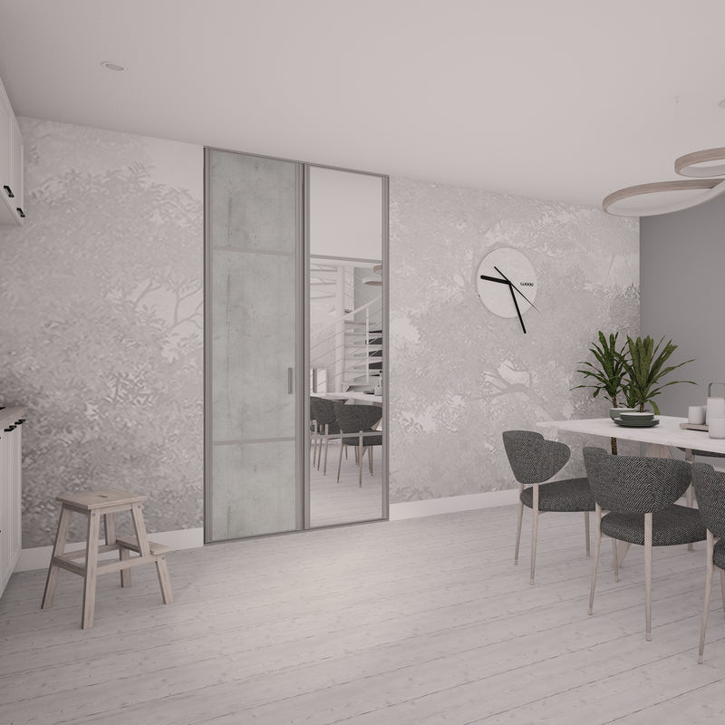 Intemporelle et élégante, la collection de portes de placard Ibis sera parfaite pour votre intérieur. Habillées d’un brillant miroir Argent, ces portes Kazed se déclinent en de somptueux décors aux nuances de gris très modernes. Les effets Béton wood, Pierre minérale, Gris anthracite et le miroir sont sublimés par des finitions alu naturel. Matière noble, l’aluminium des poignées, rail et traverses offre un rendu particulièrement soigné et haut de gamme. Ces façades de placard, fabriquées en France, sont disponibles en 2,3 ou 4 portes coulissantes. Elles se déclinent également en 1 et 2 portes pivotantes.