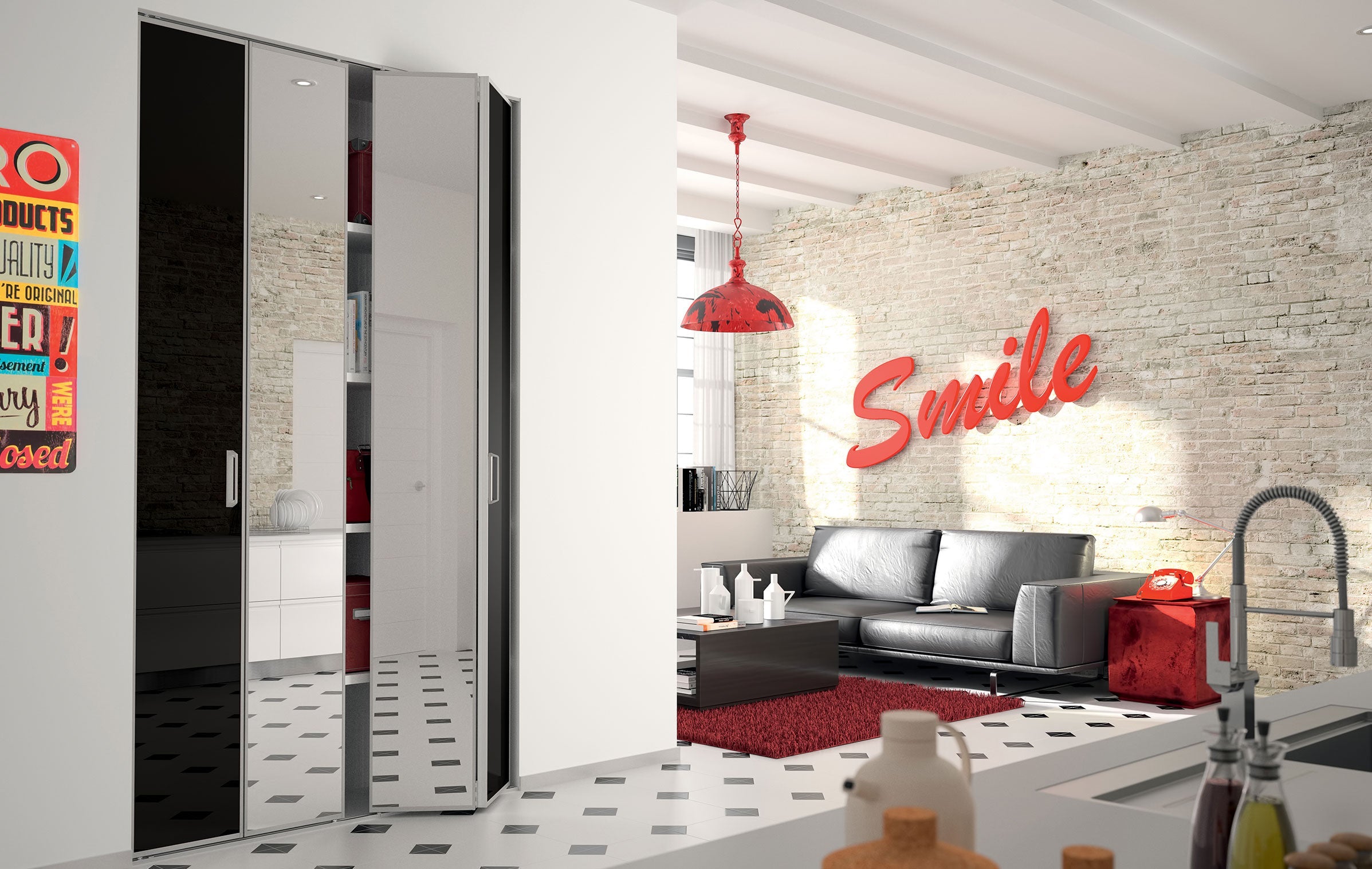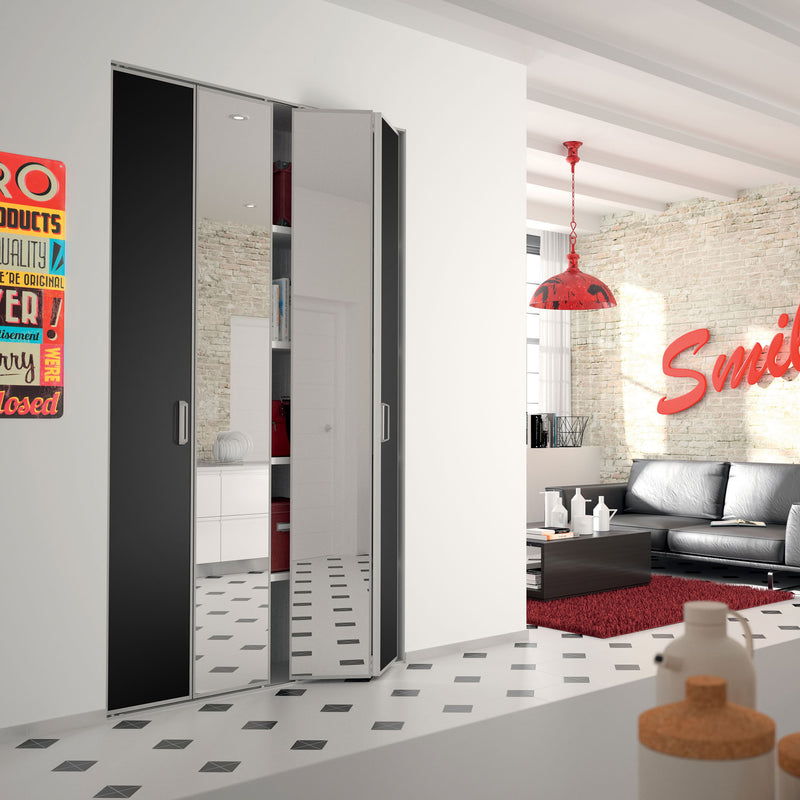 Petit chouchou du moment, le style rétro est devenu un must-have dans la décoration de votre salon. Ici, nous revisitons la porte de placard pliante en version rétro-moderne qui apporte un coté pop et lumineux à votre intérieur tout en donnant accès à la quasi-totalité de votre rangement.