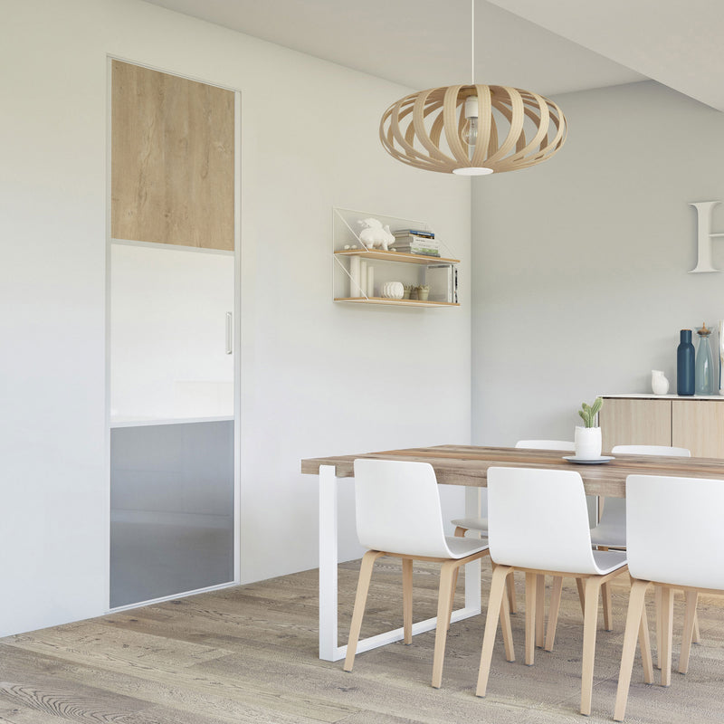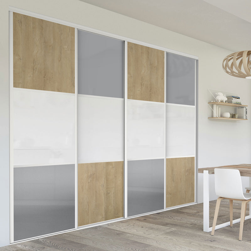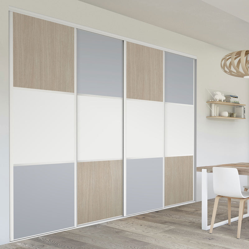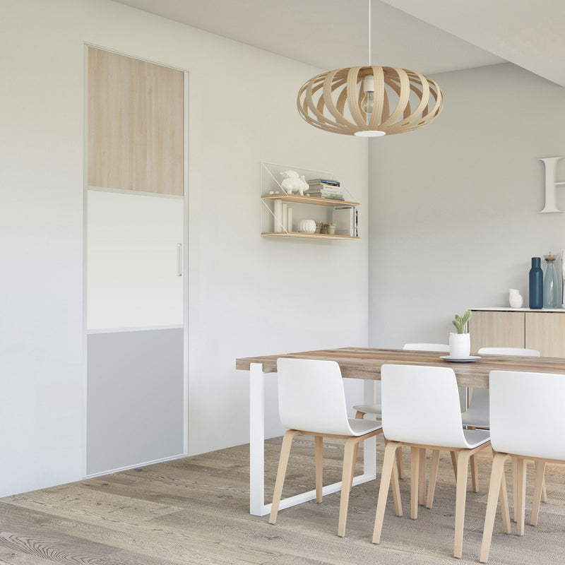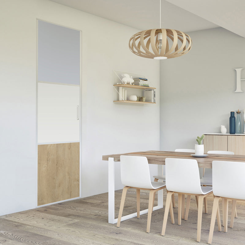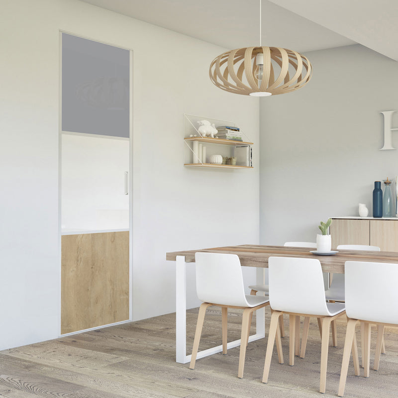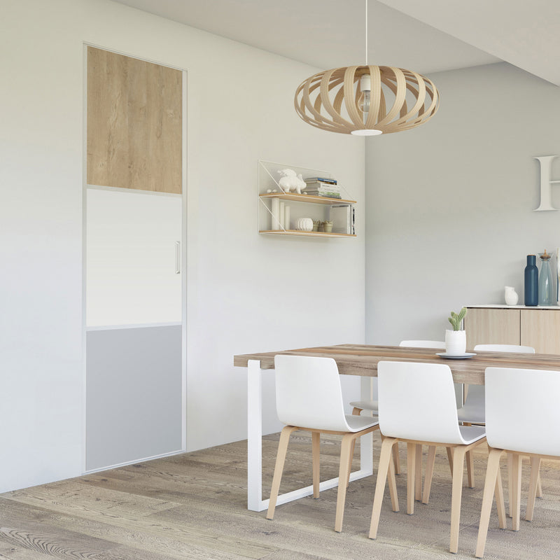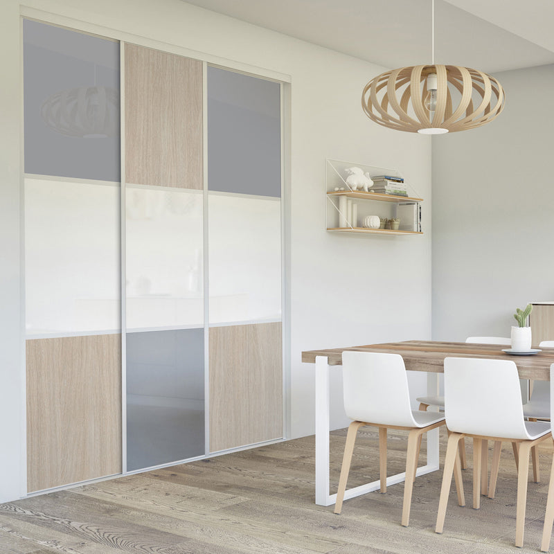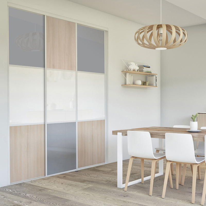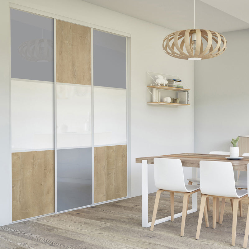 Pour un intérieur tendance et chaleureux, on adopte le style scandinave et cette Collection Minsk qui y trouvera parfaitement sa place. Elle mixe des tons bois clairs, doux et authentiques, à des couleurs neutres et intemporelles, le blanc et le gris. La composition en damier de ces portes coulissantes et pivotantes apporte une touche graphique et originale et la finition en alu Blanc mat sublime l’ensemble.