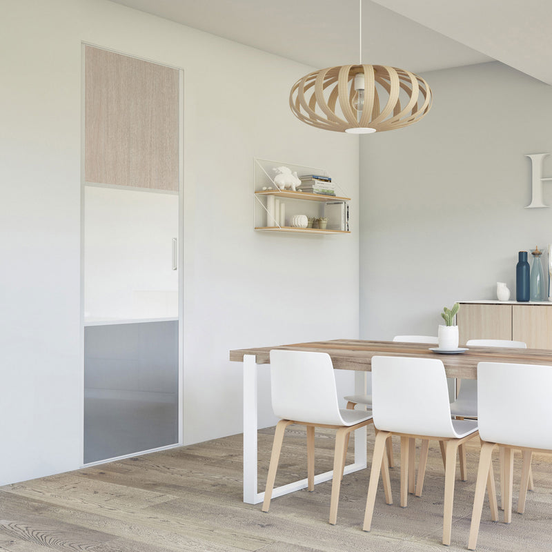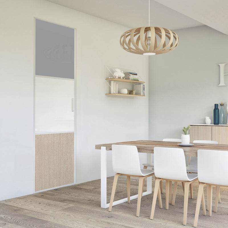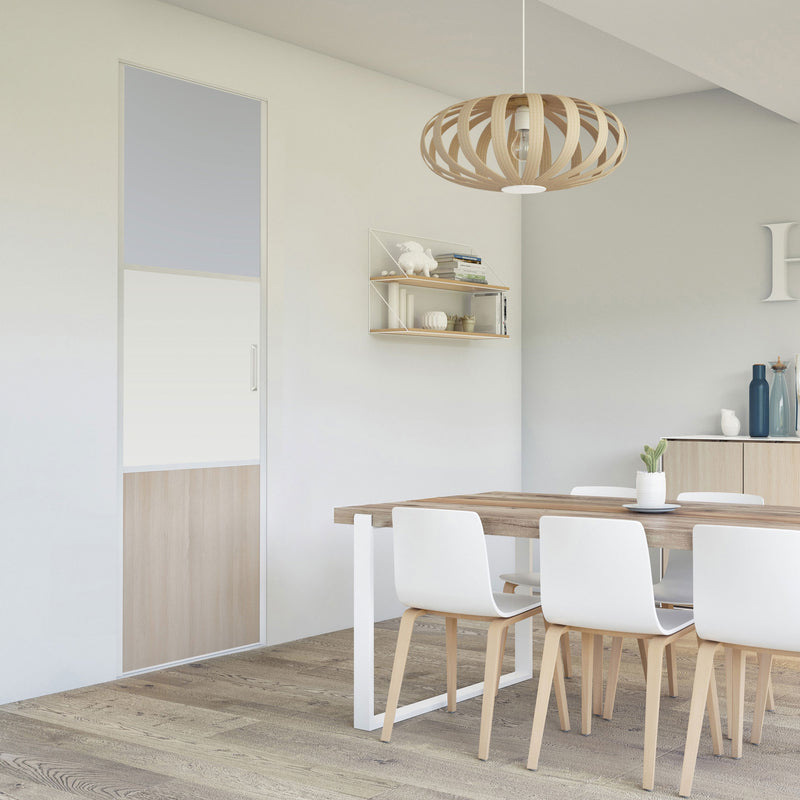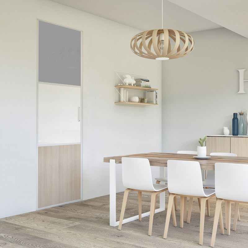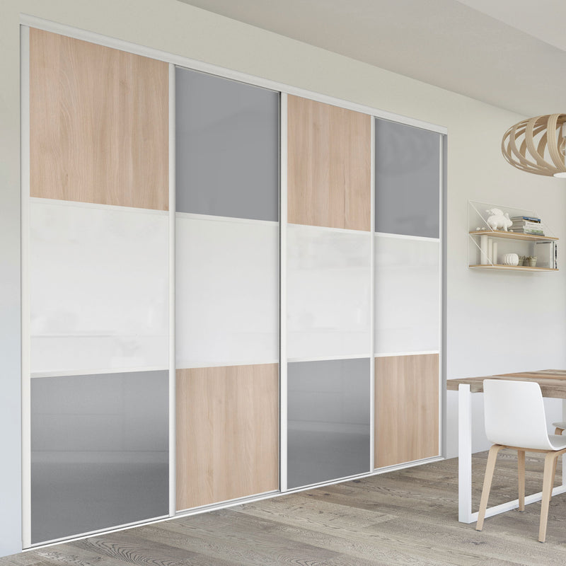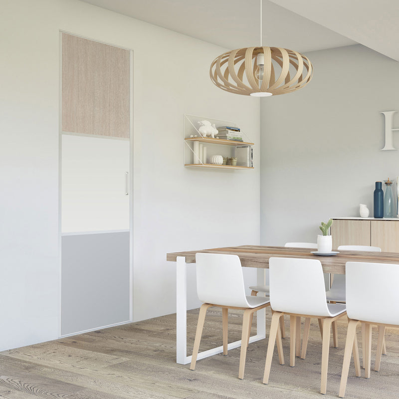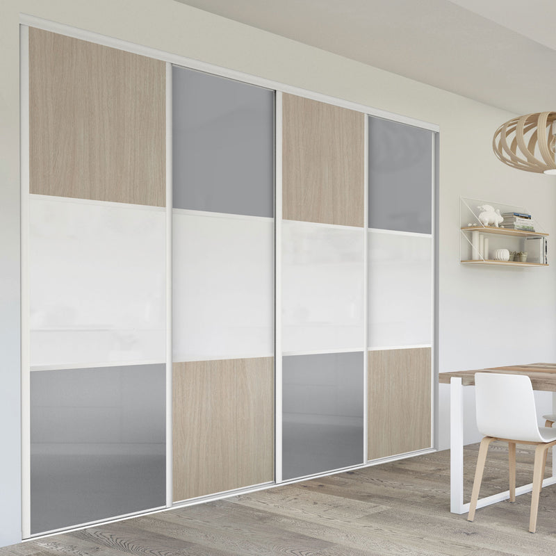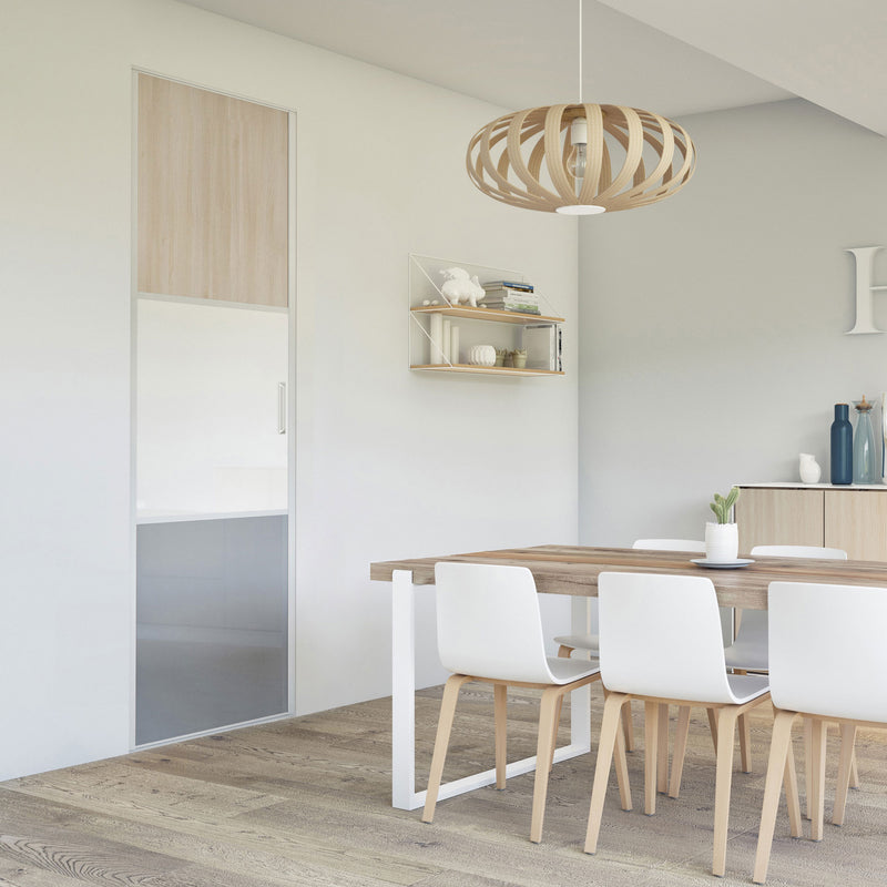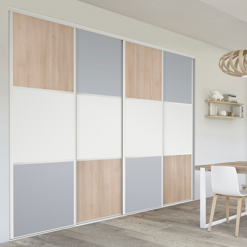 Pour un intérieur tendance et chaleureux, on adopte le style scandinave et cette Collection Minsk qui y trouvera parfaitement sa place. Elle mixe des tons bois clairs, doux et authentiques, à des couleurs neutres et intemporelles, le blanc et le gris. La composition en damier de ces portes coulissantes et pivotantes apporte une touche graphique et originale et la finition en alu Blanc mat sublime l’ensemble.