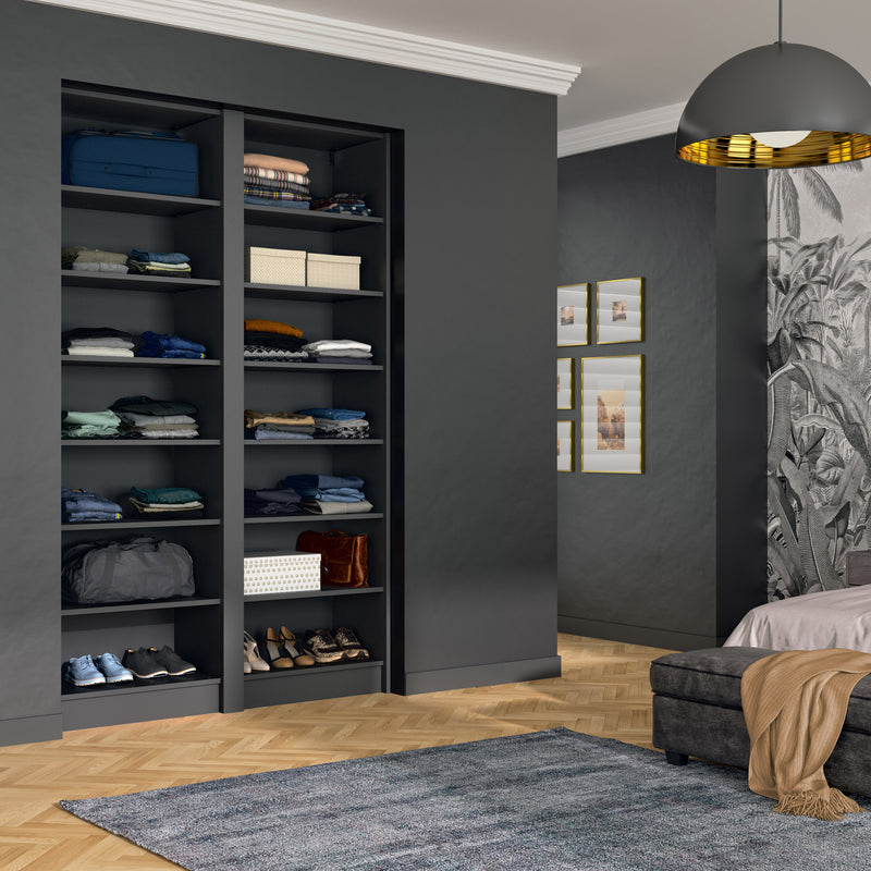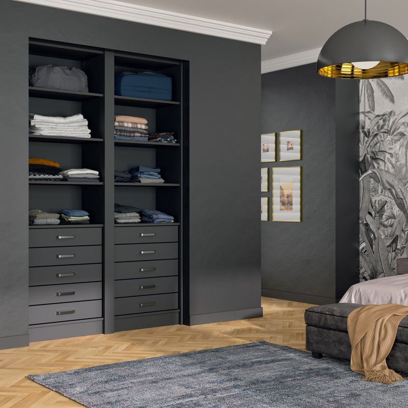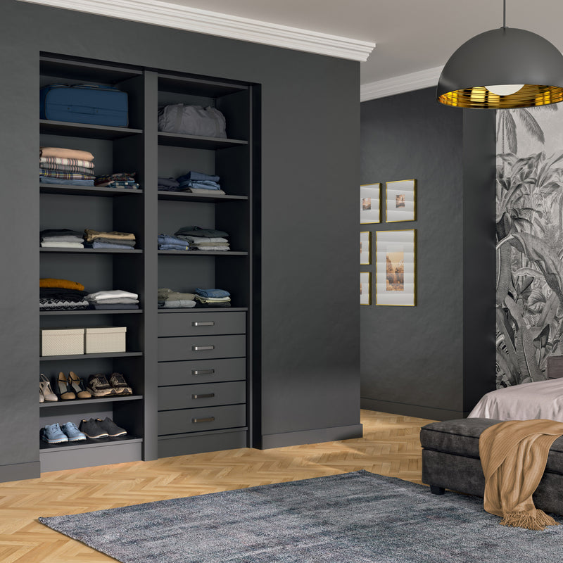 Aménagement 2 espaces, profondeur 465 mm, Graphite, 1 tringle - 8 étagères - 5 tiroirs