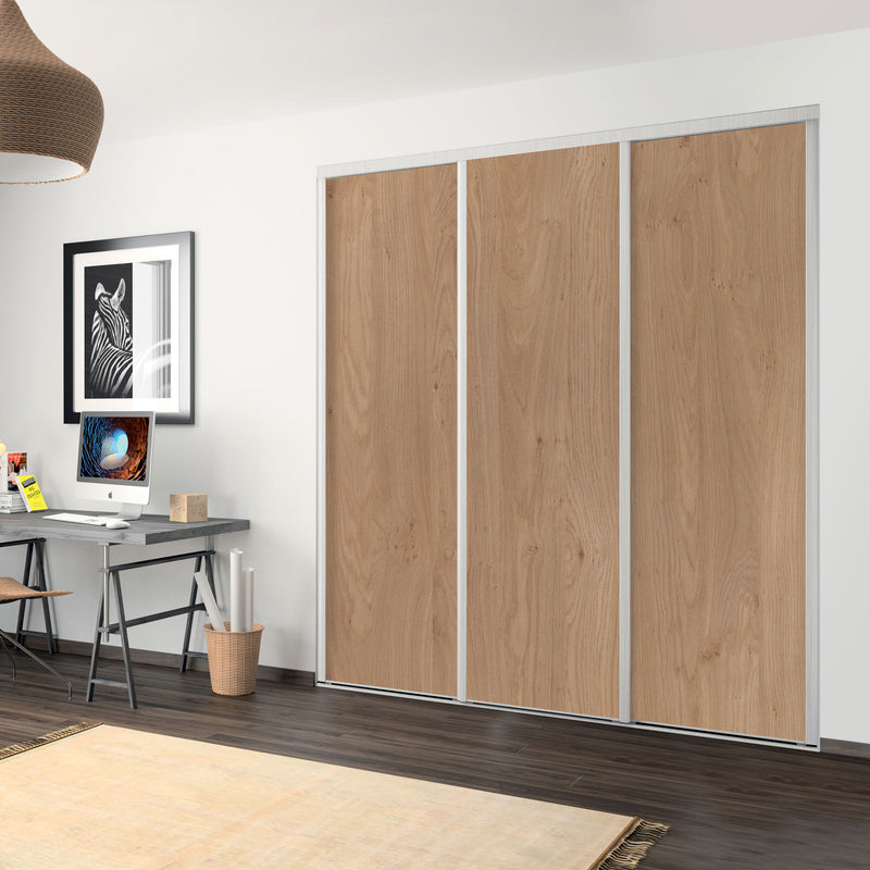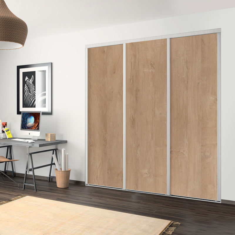 Façade de placard coulissante 4 portes décor chêne cigare brut