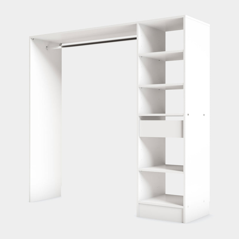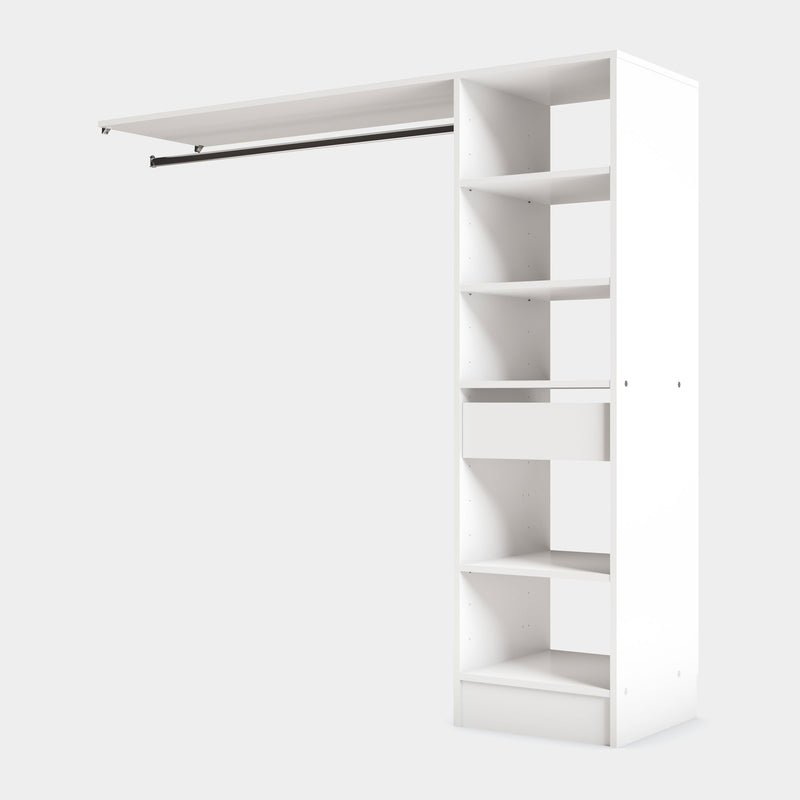 Aménagement Blanc Mat - 1 colonne - 5 tablettes - 1 penderie - 1 tiroir