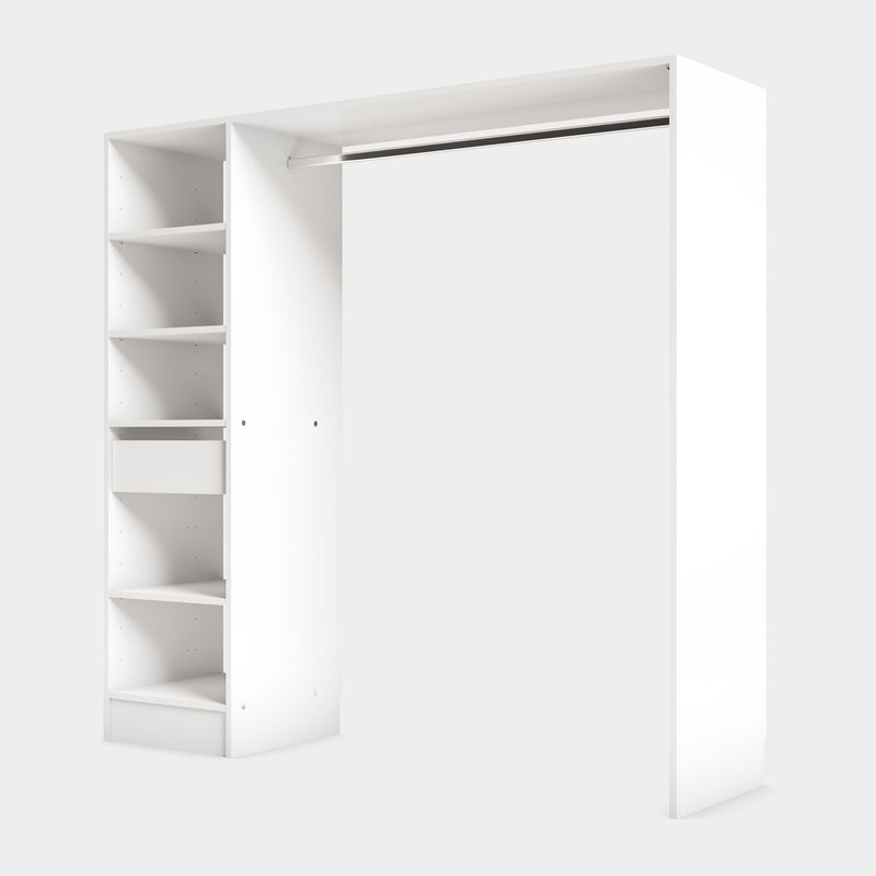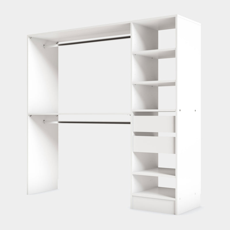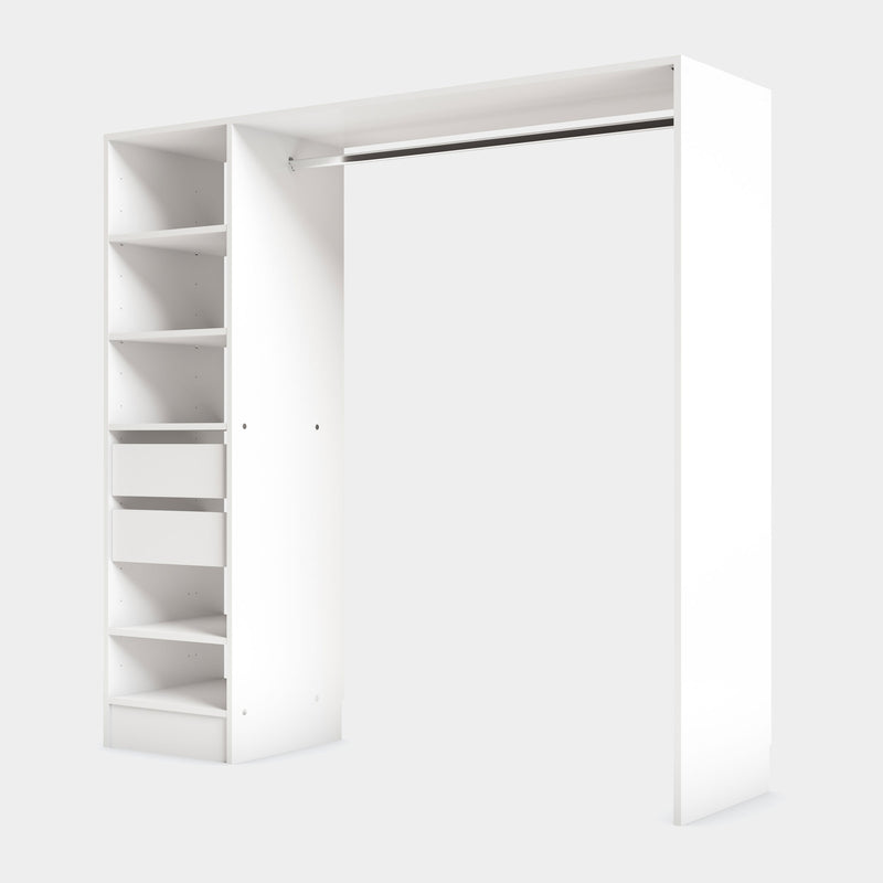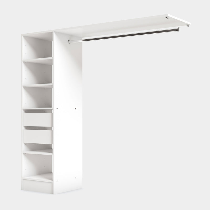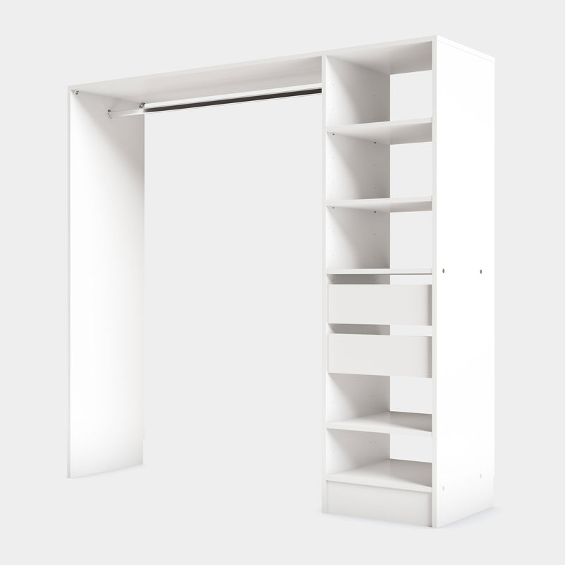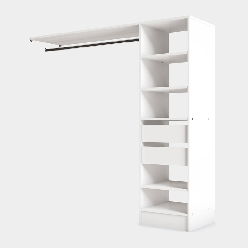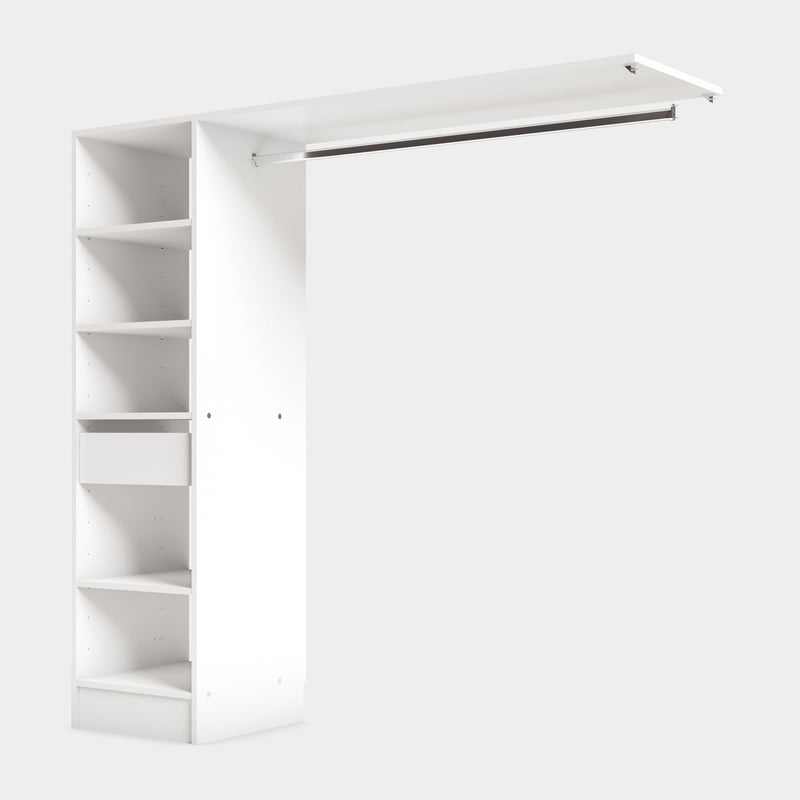 Aménagement Blanc Mat - 1 colonne - 5 tablettes - 1 penderie - 2 tiroirs