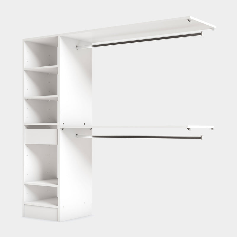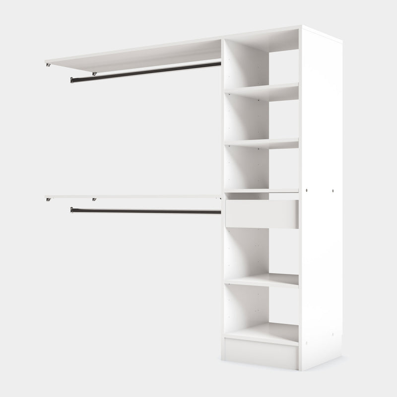 Aménagement Blanc Mat - 1 colonne - 5 tablettes - 2 penderies - 1 tiroir