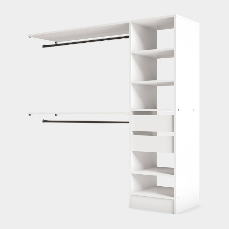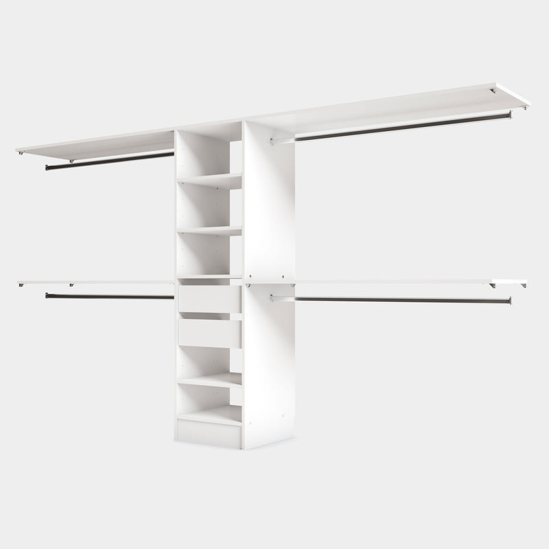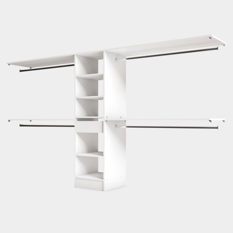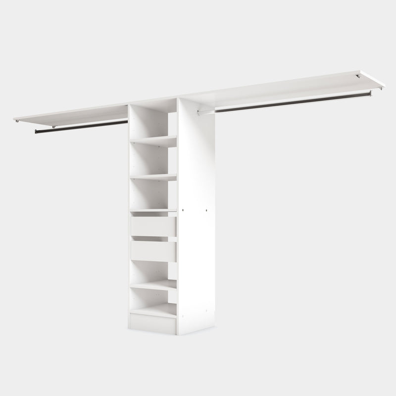 Aménagement Blanc Mat - 1 colonne - 5 tablettes - 4 penderies - 2 tiroirs