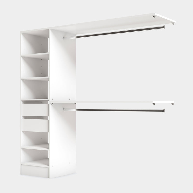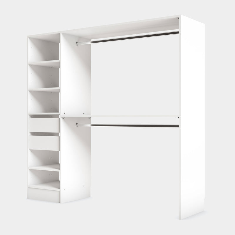 Aménagement Blanc Mat - 1 colonne - 5 tablettes - 2 penderies - 2 tiroirs
