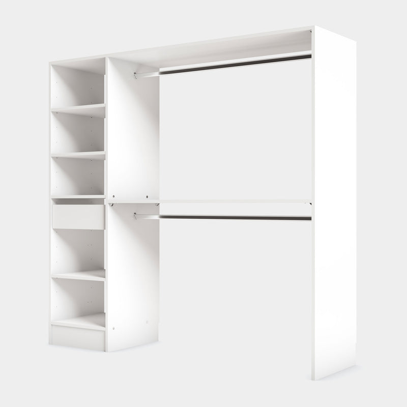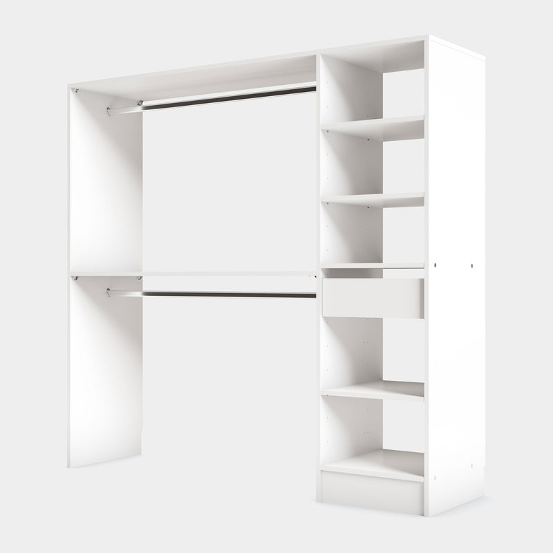 Aménagement Blanc Mat - 1 colonne - 5 tablettes - 2 penderies - 1 tiroir