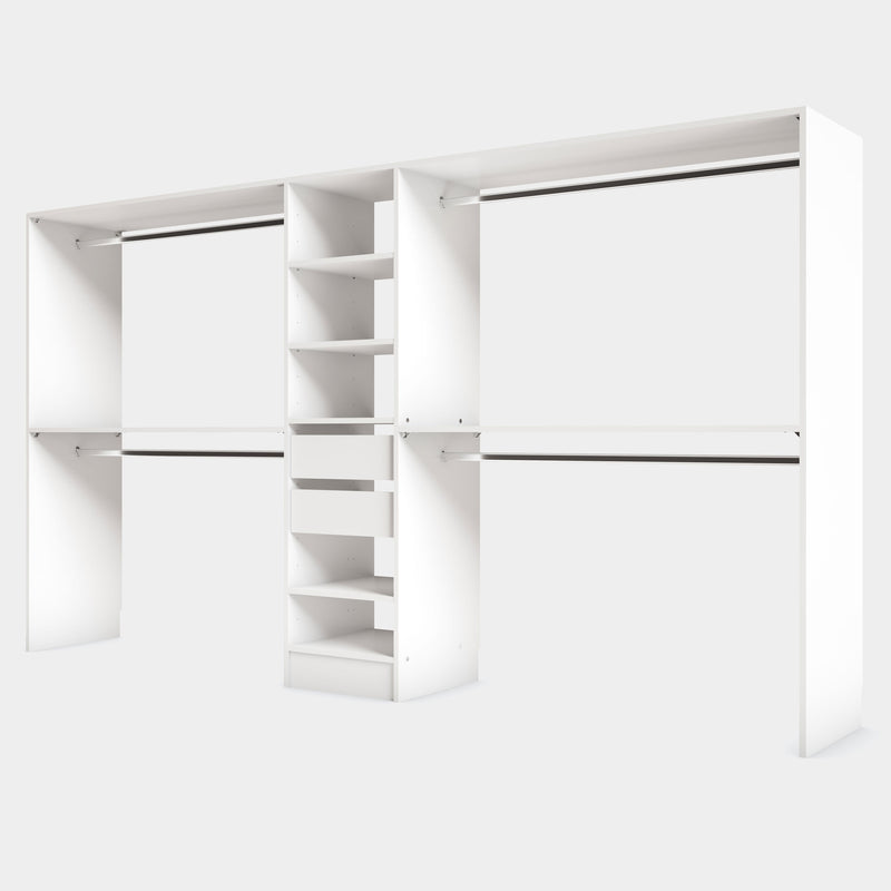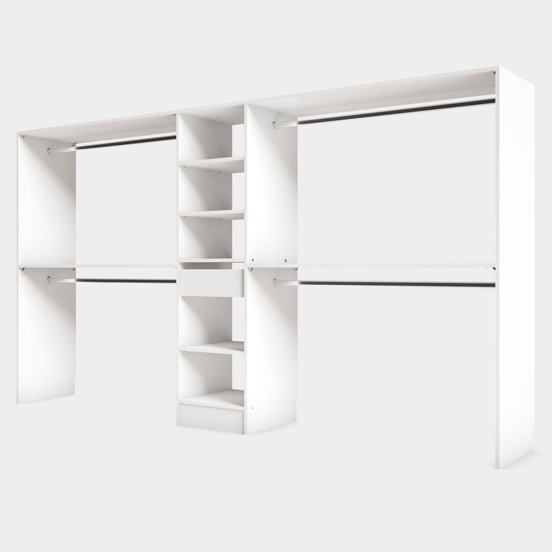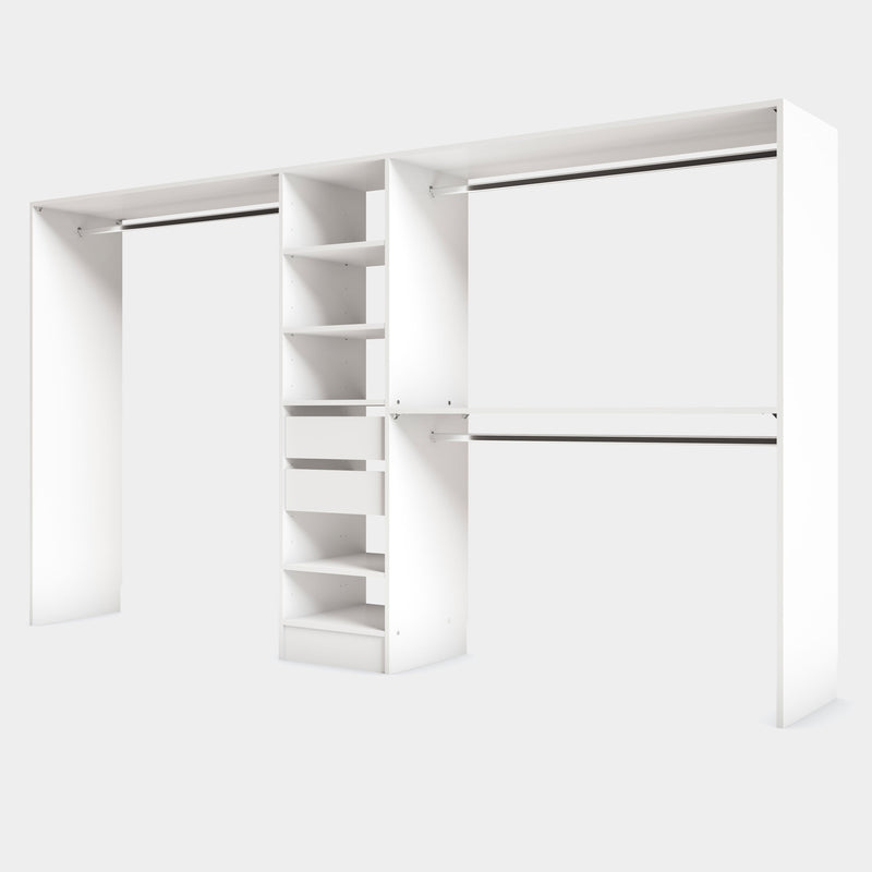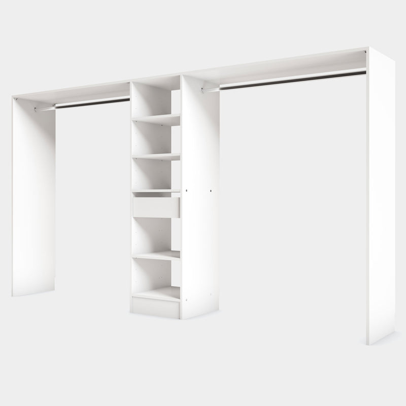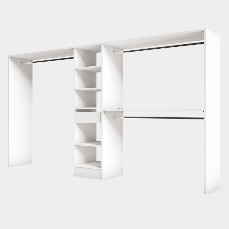 Aménagement Blanc Mat - 1 colonne - 5 tablettes - 3 penderies - 2 tiroirs