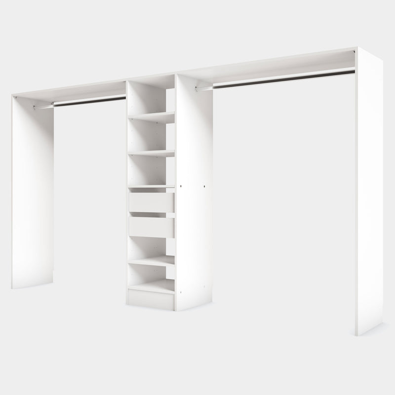 Aménagement Blanc Mat - 1 colonne - 5 tablettes - 2 penderies - 2 tiroirs