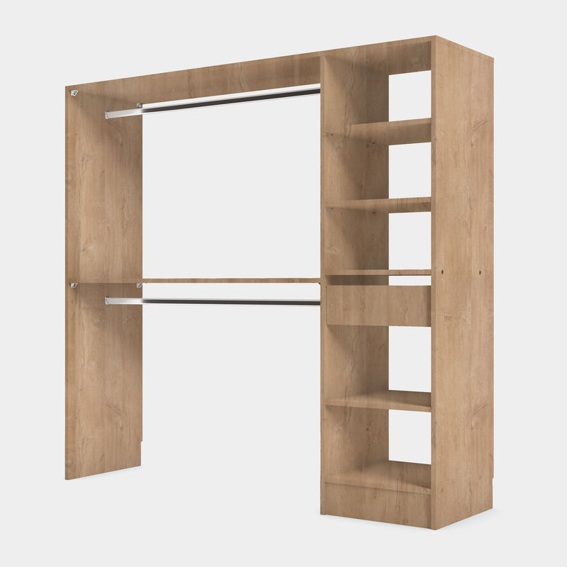 Aménagement Chêne Blond - 1 colonne - 5 tablettes - 2 penderies - 1 tiroir