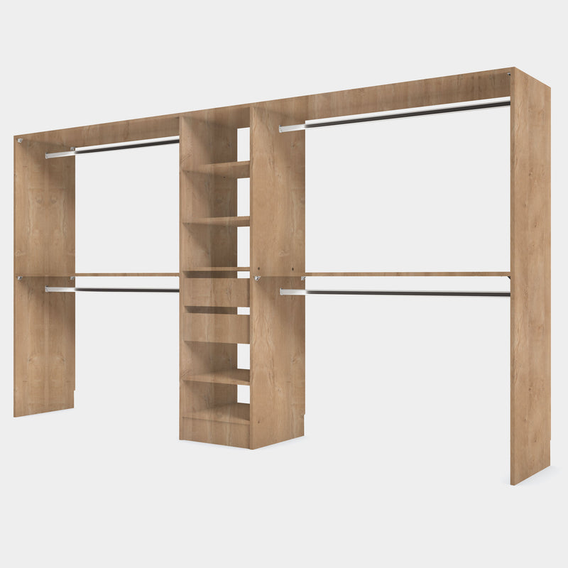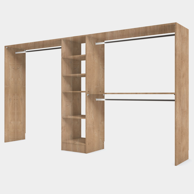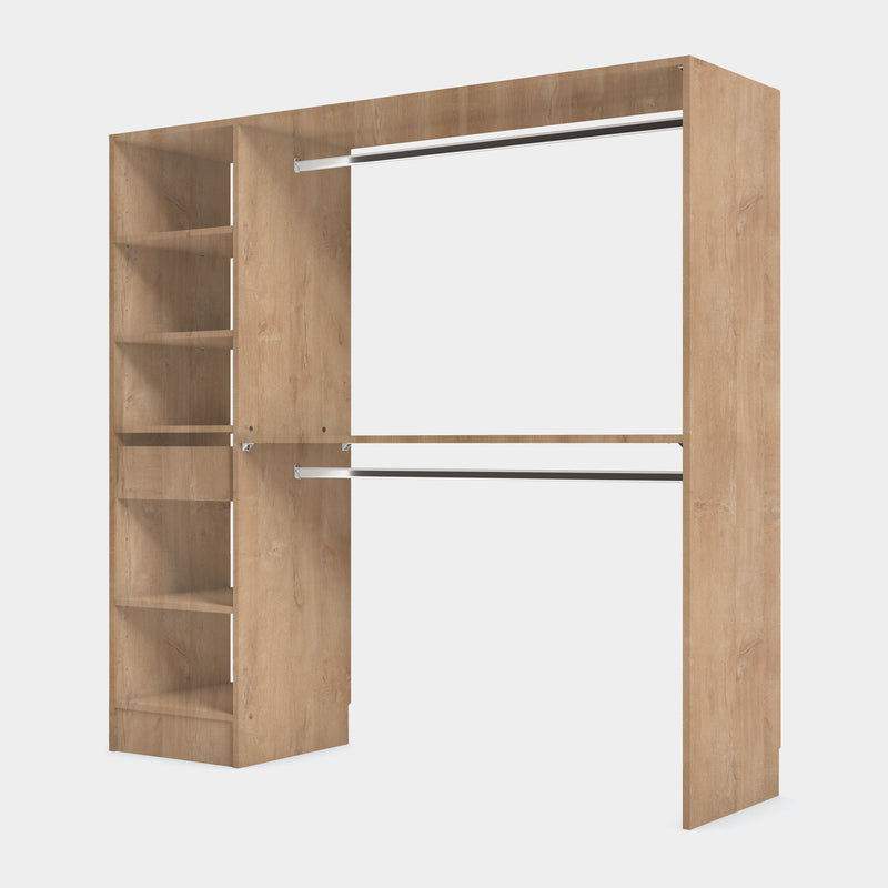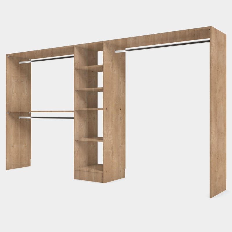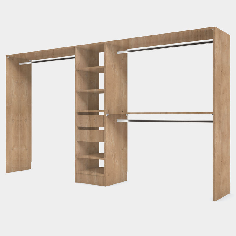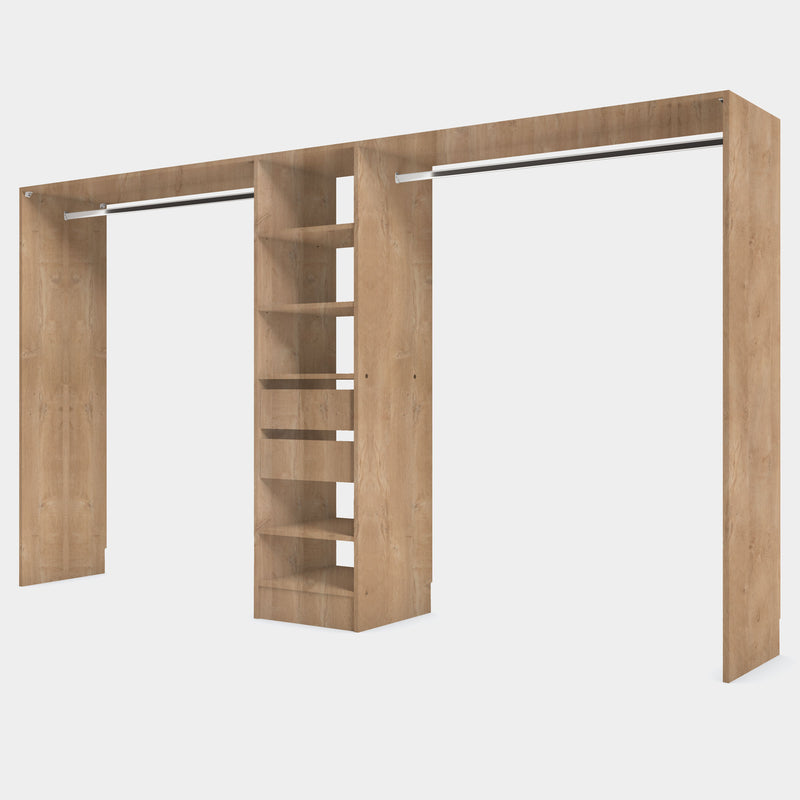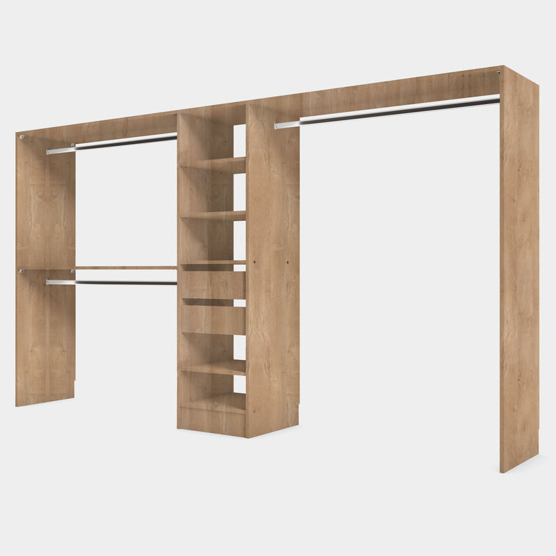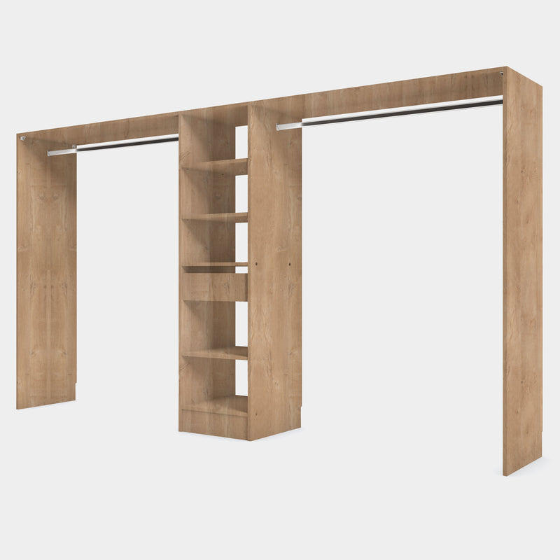 Aménagement Chêne Blond - 1 colonne - 5 tablettes - 3 penderies - 2 tiroirs
