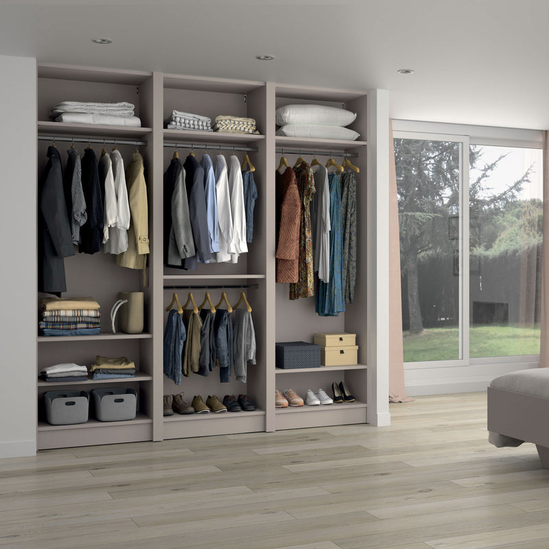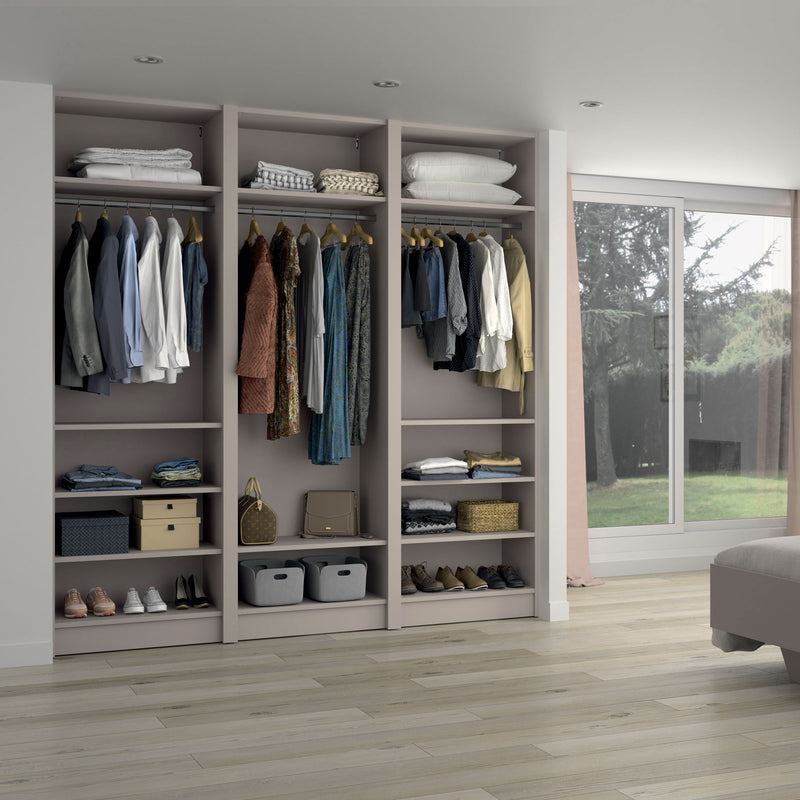 Aménagement 3 espaces, profondeur 465 mm, Moka, 3 tringles - 10 étagères