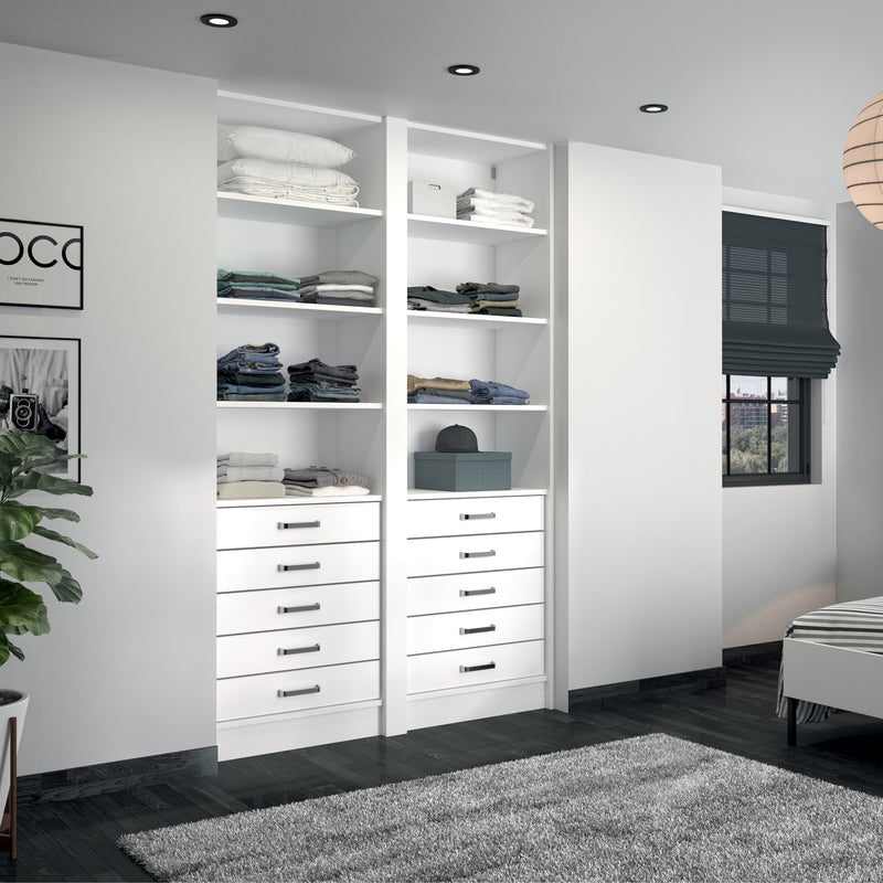 Aménagement 2 espaces, profondeur 465 mm, Blanc Mat, - 10 étagères - 5 tiroirs