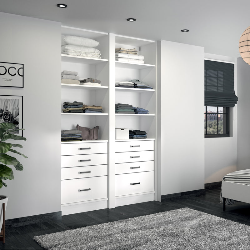 Aménagement 2 espaces, profondeur 465 mm, Blanc Mat, - 8 étagères - 8 tiroirs