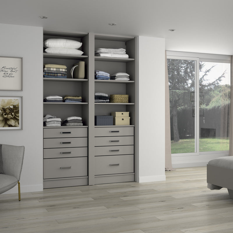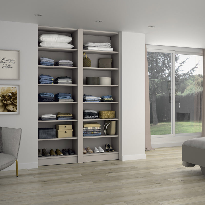 Aménagement 2 espaces, profondeur 550 mm, Moka, - 8 étagères - 8 tiroirs