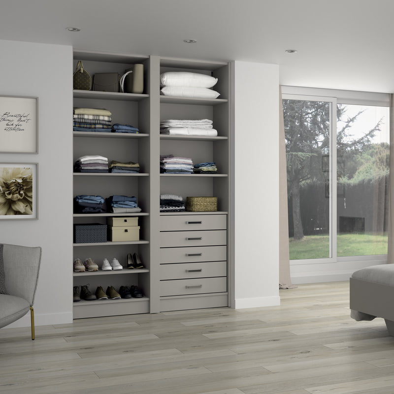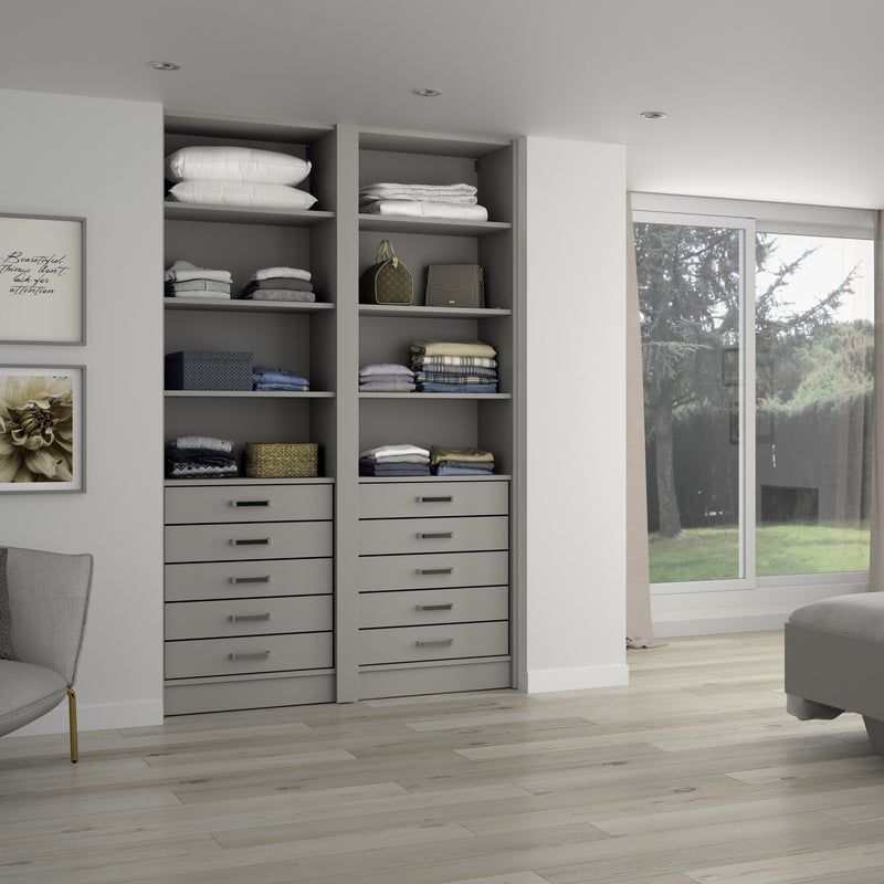 Aménagement 2 espaces, profondeur 550 mm, Moka, - 10 étagères - 5 tiroirs